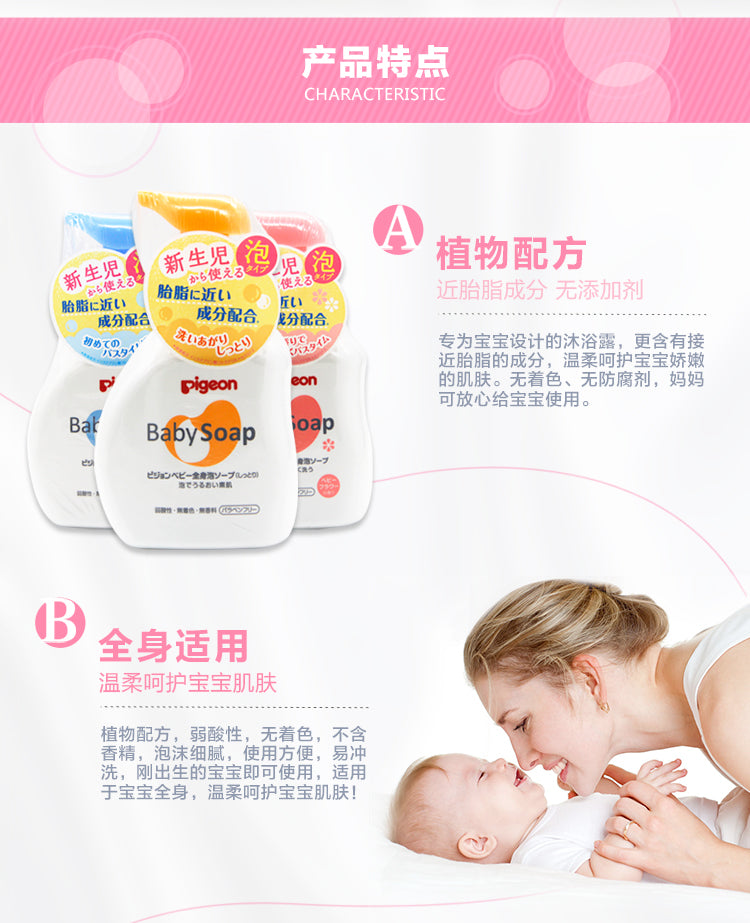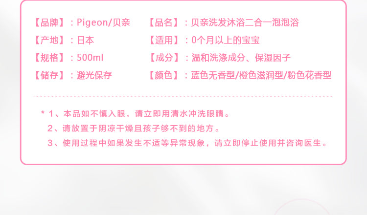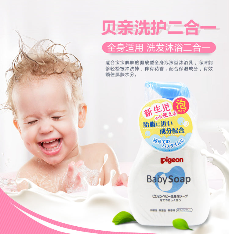 【自营】日本PIGEON贝亲 新生儿婴儿宝宝 泡泡洗发沐浴露2合1 橙色滋润型 500ml