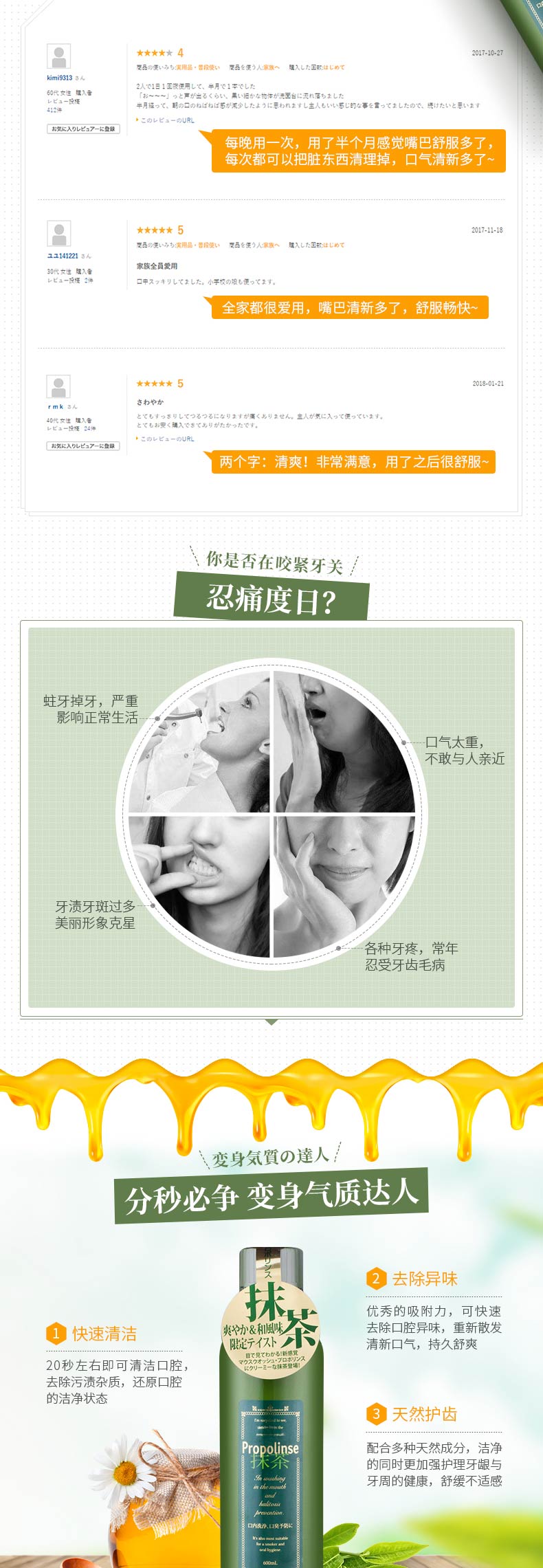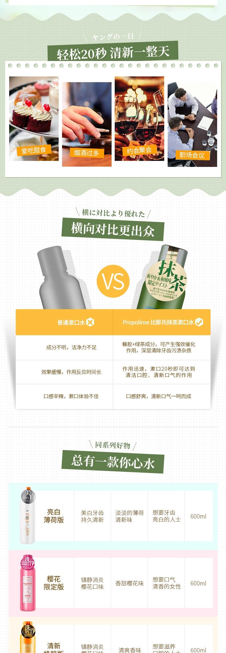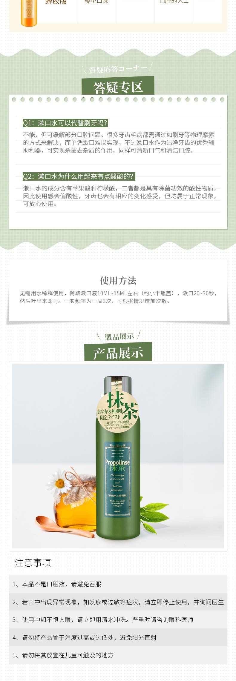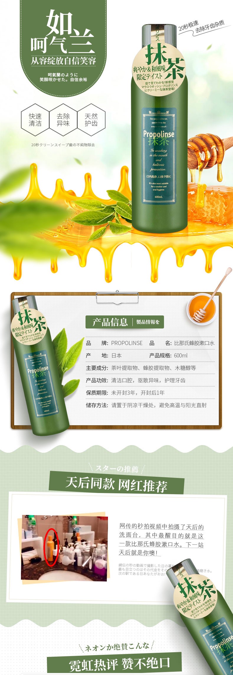 【自营】日本PROPOLINSE比那氏 蜂胶复合抹茶漱口水 600ml