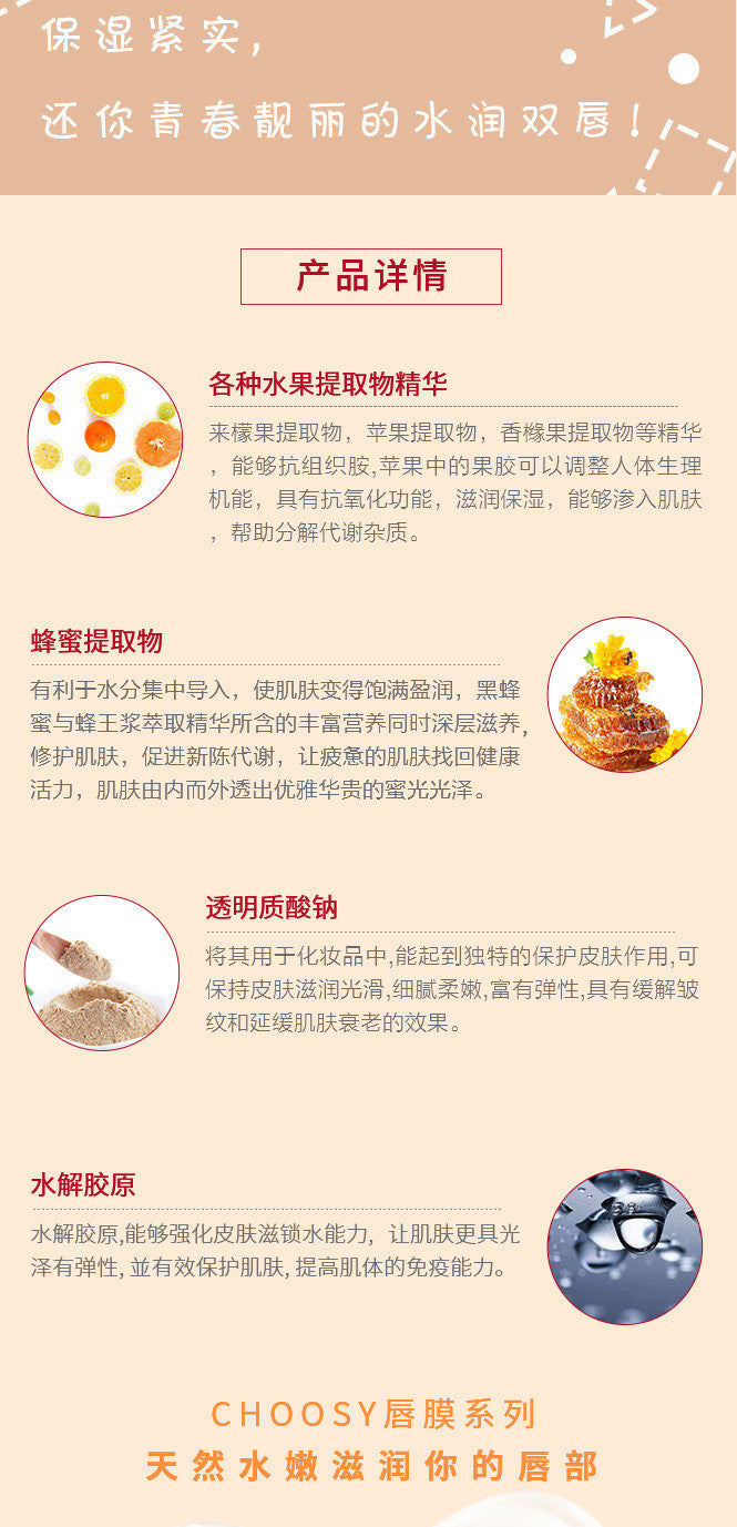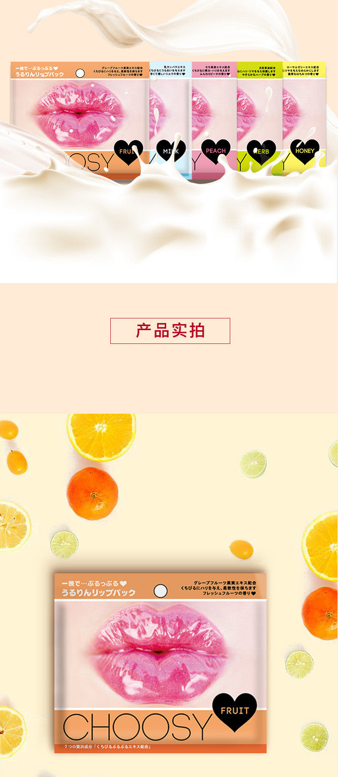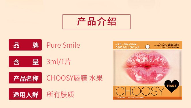 【自营】日本PURE SMILE CHOOSY 水嫩浸透唇膜 水果香 3ml/1枚 保湿去唇纹