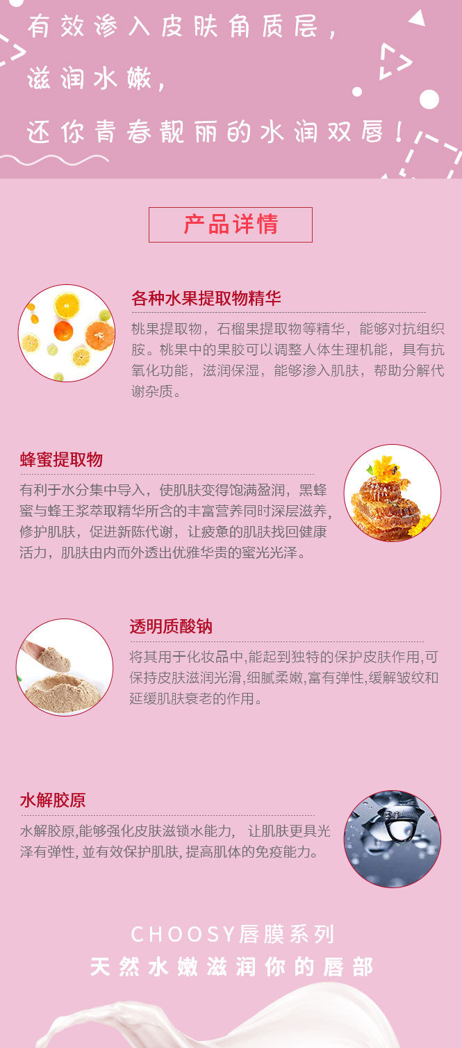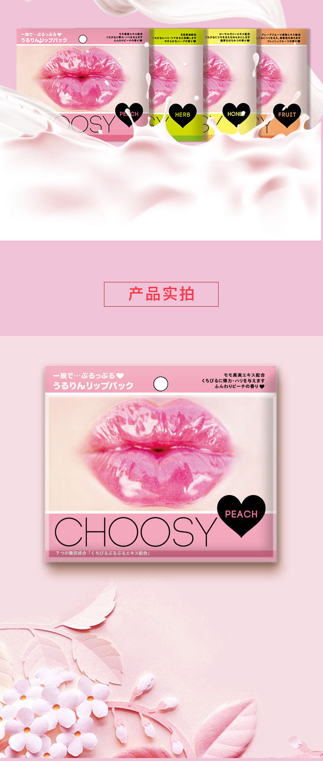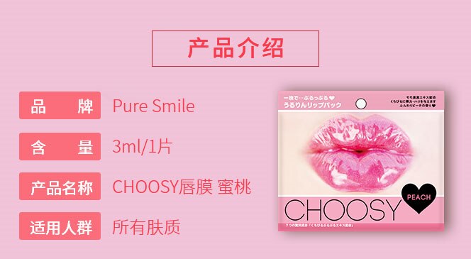 【自营】日本PURE SMILE CHOOSY 水嫩浸透唇膜 水蜜桃香 3ml/1枚 保湿去唇纹