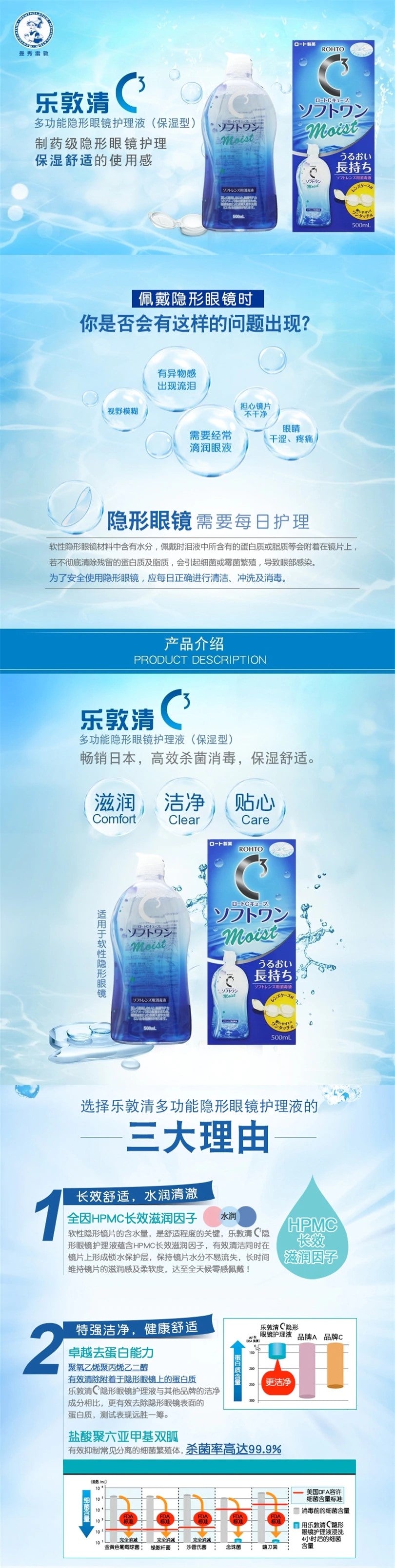 【自营】日本ROHTO乐敦 C3久滋养营养型美瞳药水隐形眼镜洗液 500ml