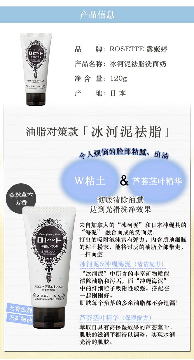 【自营】日本ROSETTE露姬婷 冰河泥去油去脂净肌控油洗面奶 120g COSME大赏