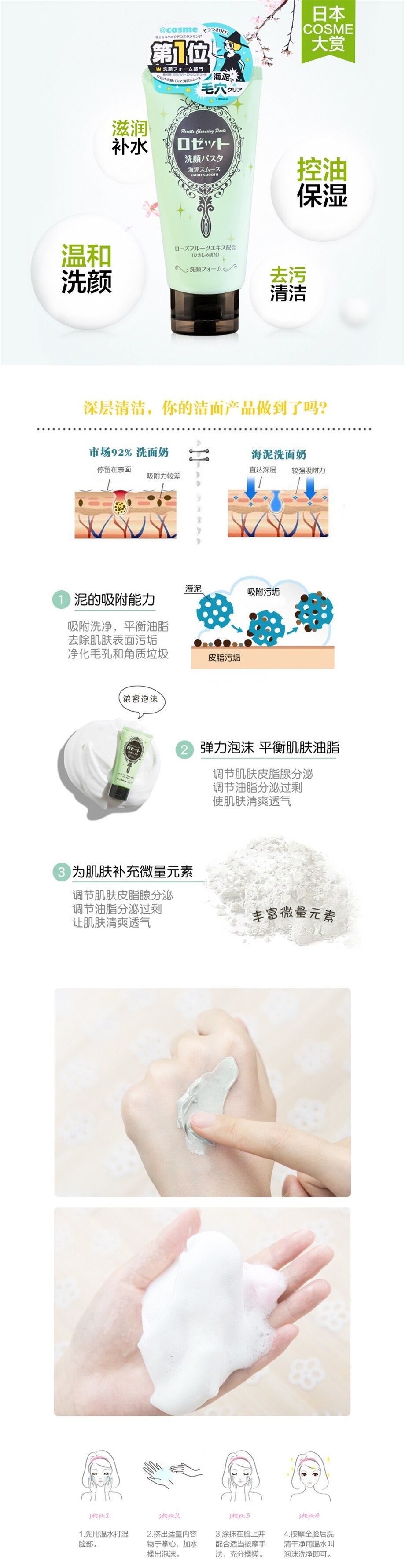 【自营】日本ROSETTE露姬婷 海泥毛孔洁净洗面奶 120g