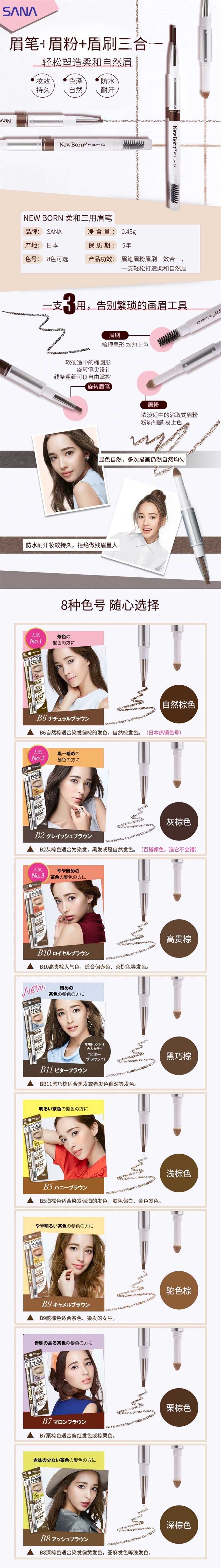 【自营】日本SANA莎娜 New Born Ex 眉采飞扬三用眉笔 眉笔+眉粉+旋转眉刷 B5 蜜棕色