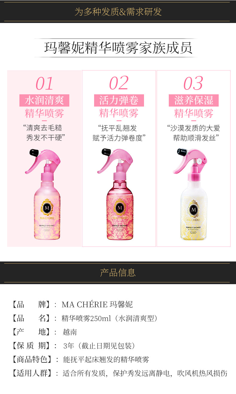 【自营】日本SHISEIDO资生堂 MA CHERIE玛馨妮 水润清爽秀发精华喷雾 250ml 01水润清爽型