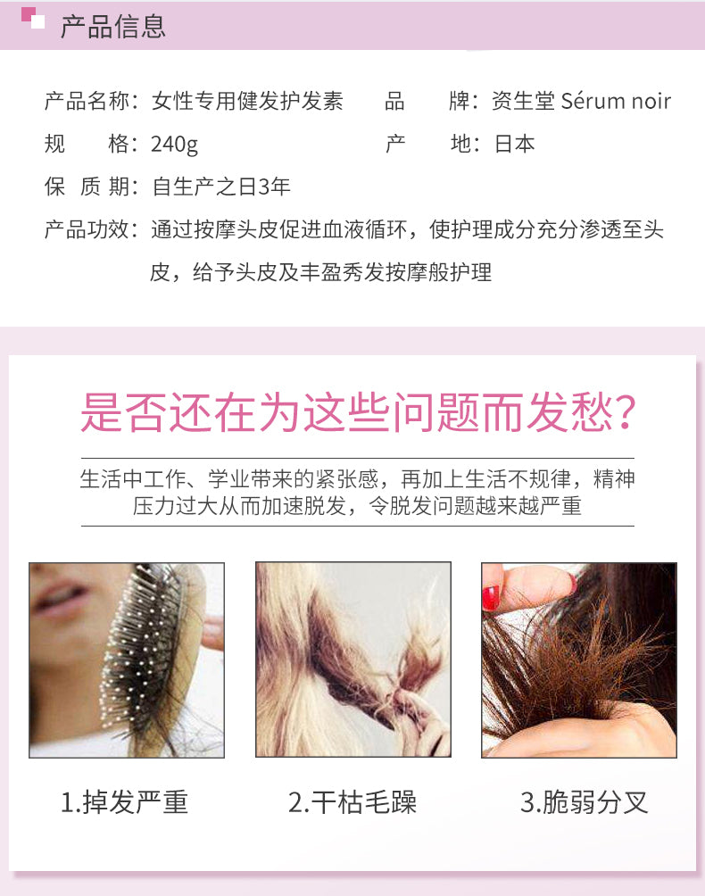 【自营】日本SHISEIDO资生堂 Serum noir不老林防脱发固发护发素 240g 护发滋养顺滑