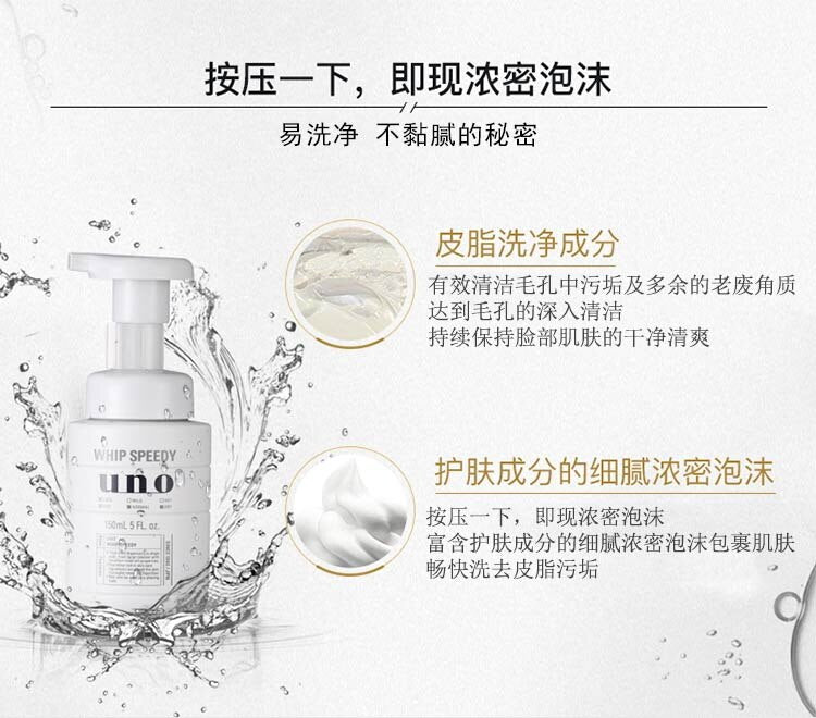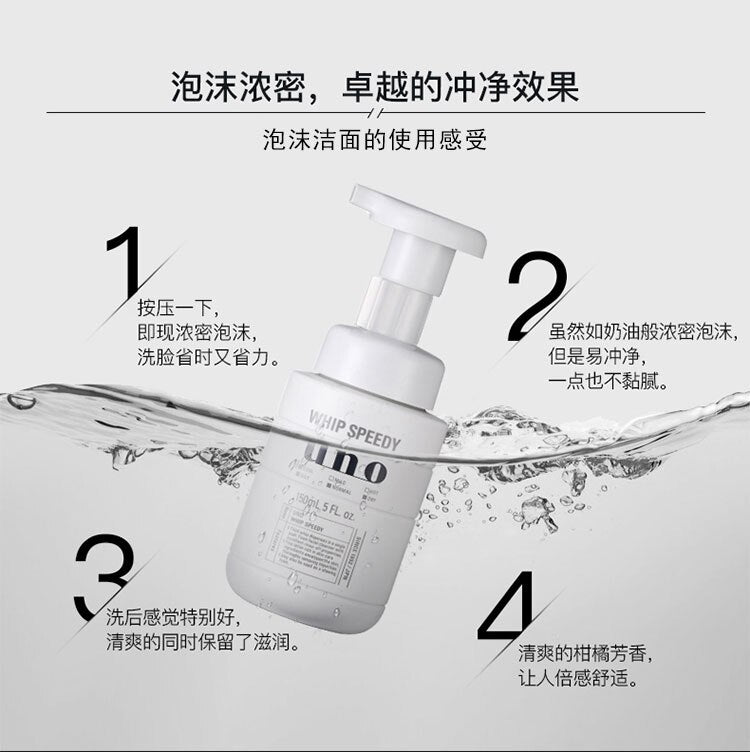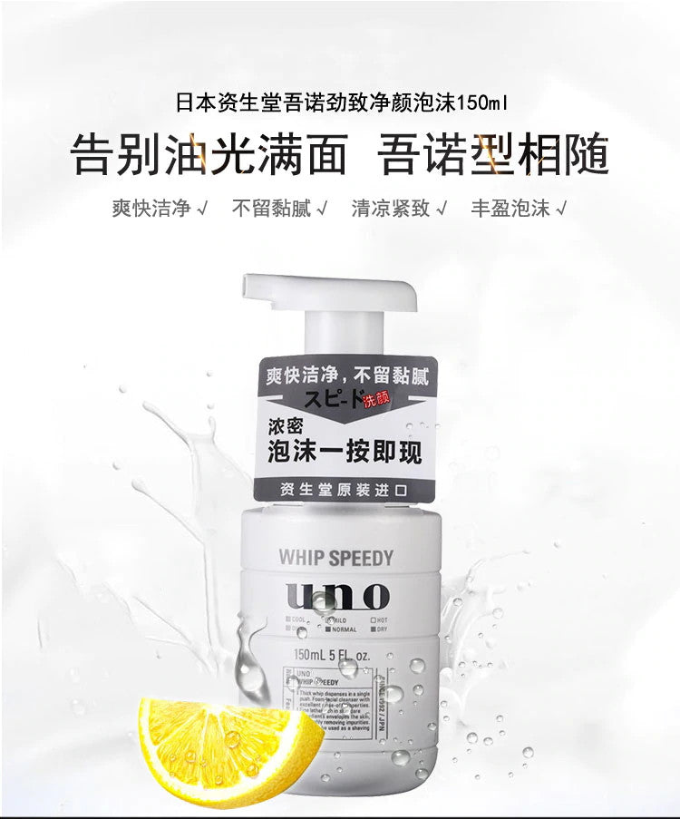 【自营】日本SHISEIDO资生堂 UNO吾诺 男士劲致净颜泡沫洗面奶 150ml 按压式浓密泡沫洁面