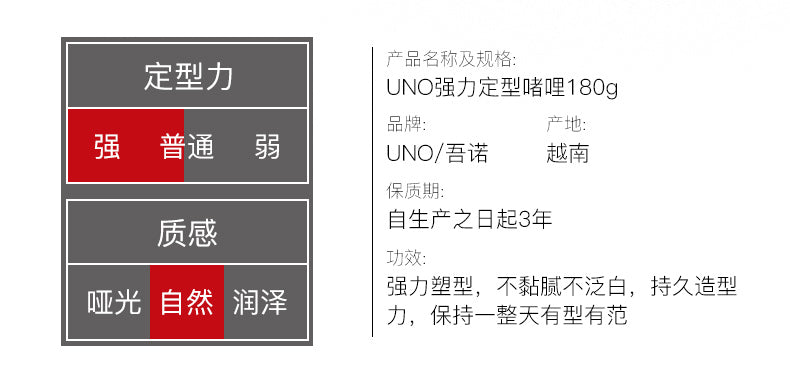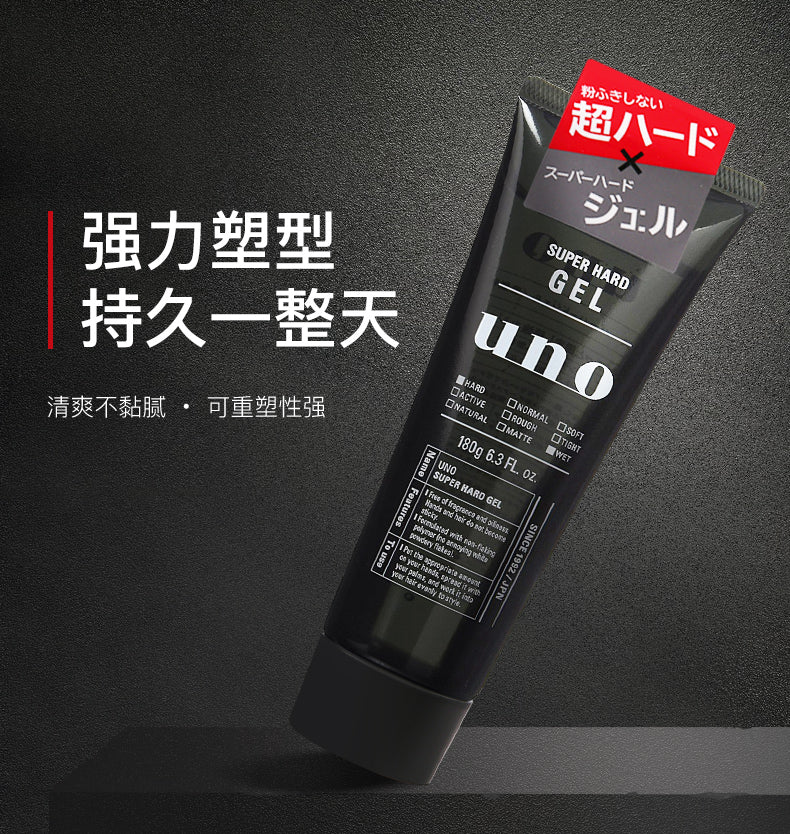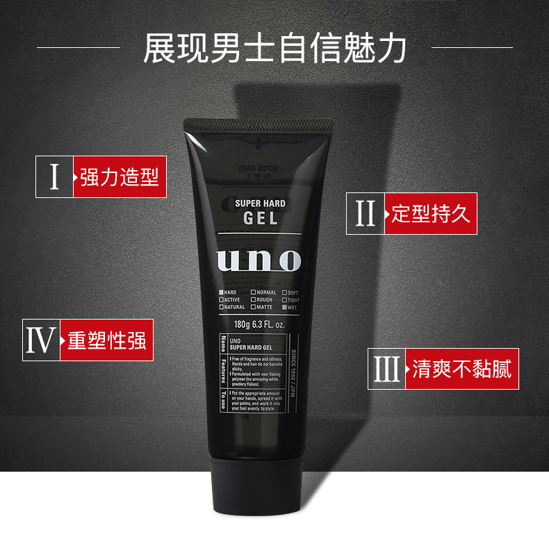 【自营】日本SHISEIDO资生堂 UNO吾诺 男士强力定型啫喱发胶 180g 持久定型清爽不黏腻