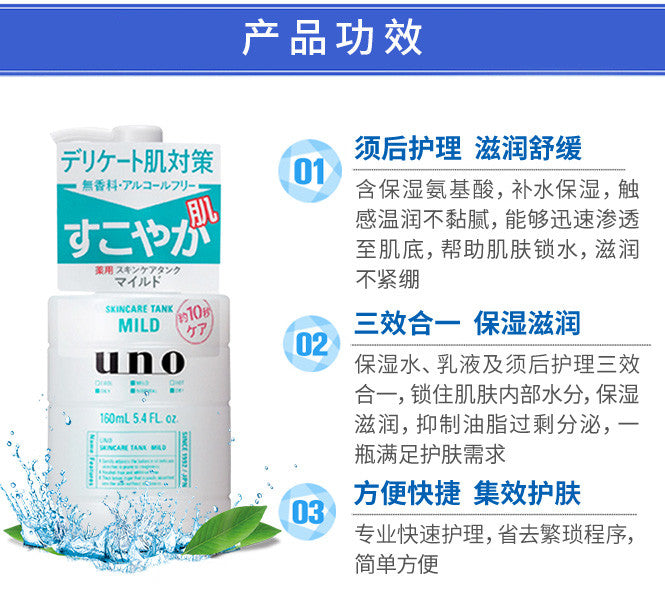 【自营】日本SHISEIDO资生堂 UNO吾诺 男士温和乳液 保湿舒缓修复 160ml