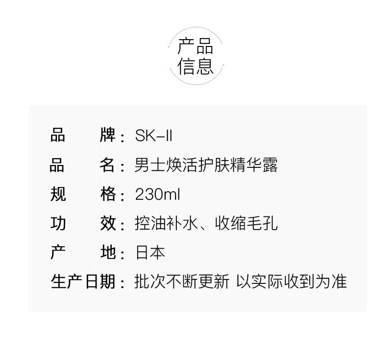 【自营】日本SK-II 男士焕活肌肤精华露 230ml 男士神仙水补水保湿清爽控油