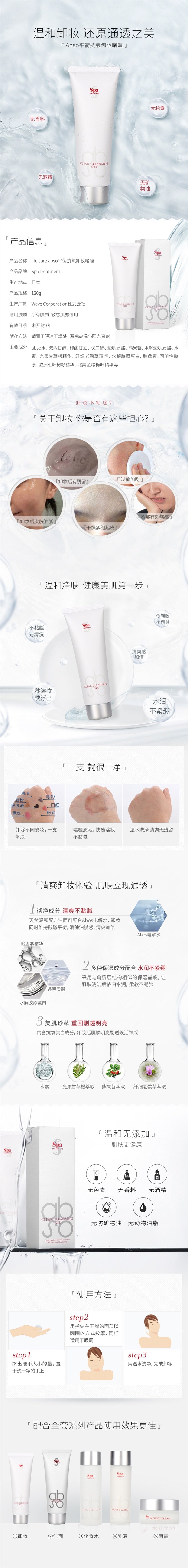 【自营】日本SPA TREATMENT蛇毒 新品ABSO平衡抗氧卸妆啫喱 120g 最新电解离子技术 温和脸眼唇卸妆无刺激
