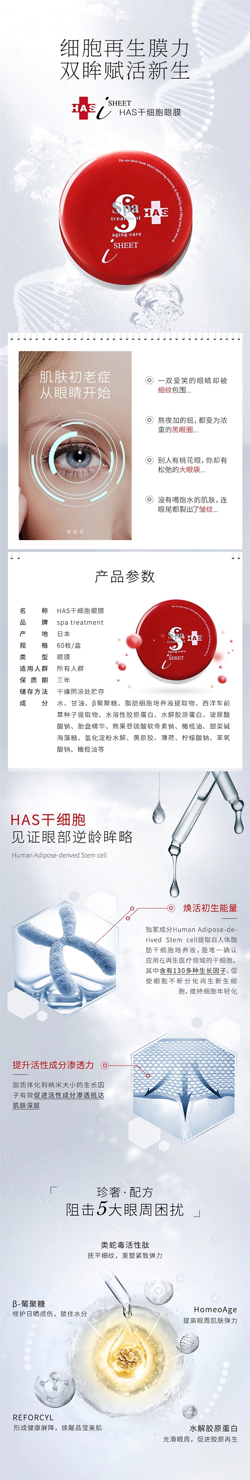 【自营】日本SPA TREATMENT 蛇毒系列 HAS干细胞保湿眼膜 60片入