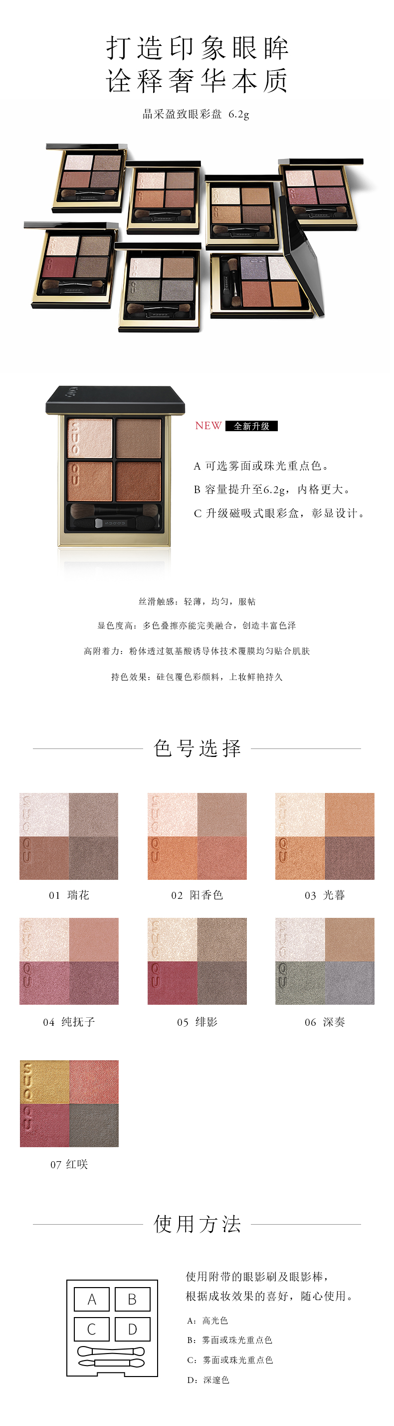 【自营】日本SUQQU苏酷 新版晶采盈致立体四色眼影盘 #07 红咲 Benisaki
