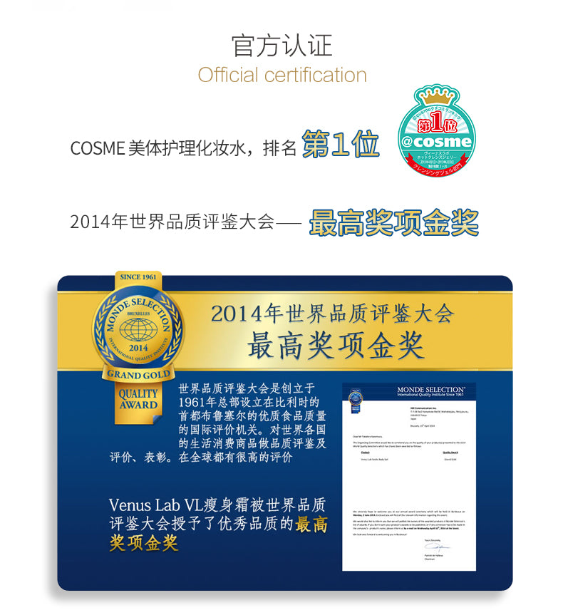【自营】日本VENUS LAB 经典热感燃脂减肥瘦腿瘦身霜 200g COSME大赏第一位