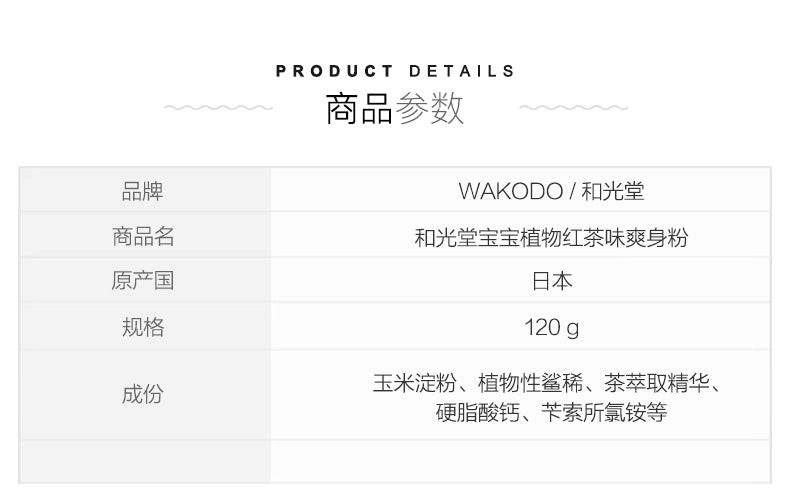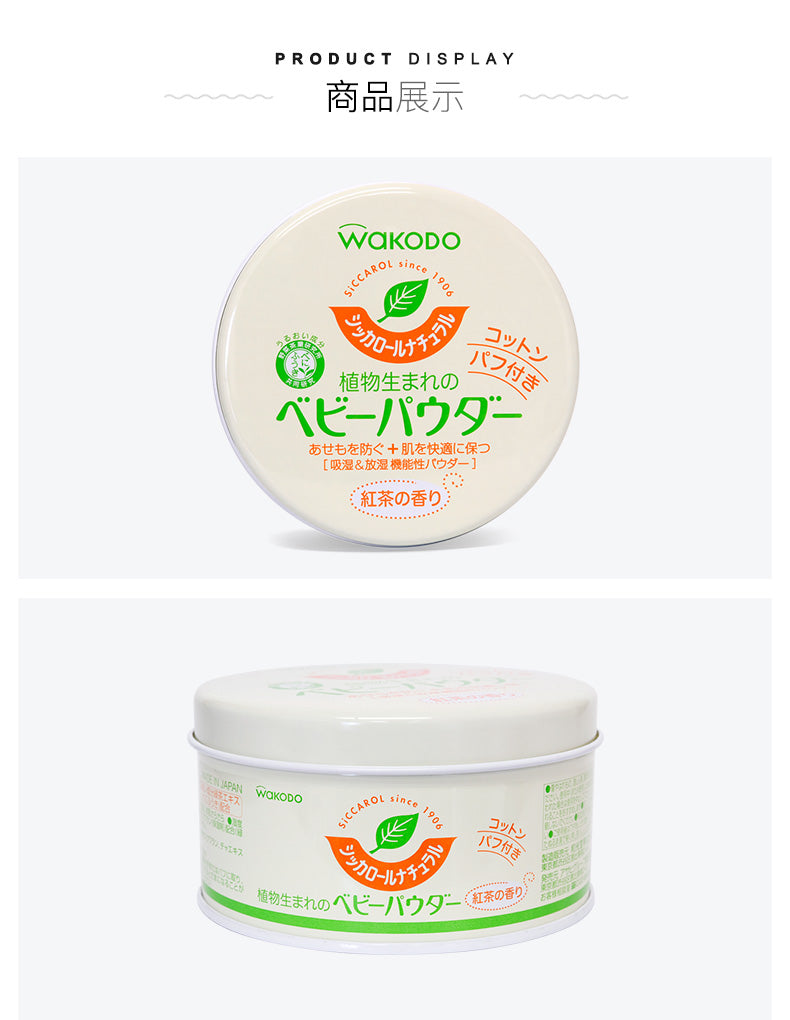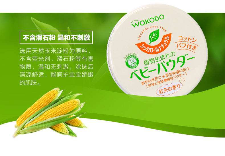 【自营】日本WAKODO和光堂 天然无尘红茶茶香 保湿宝宝爽身粉 痱子粉 120g