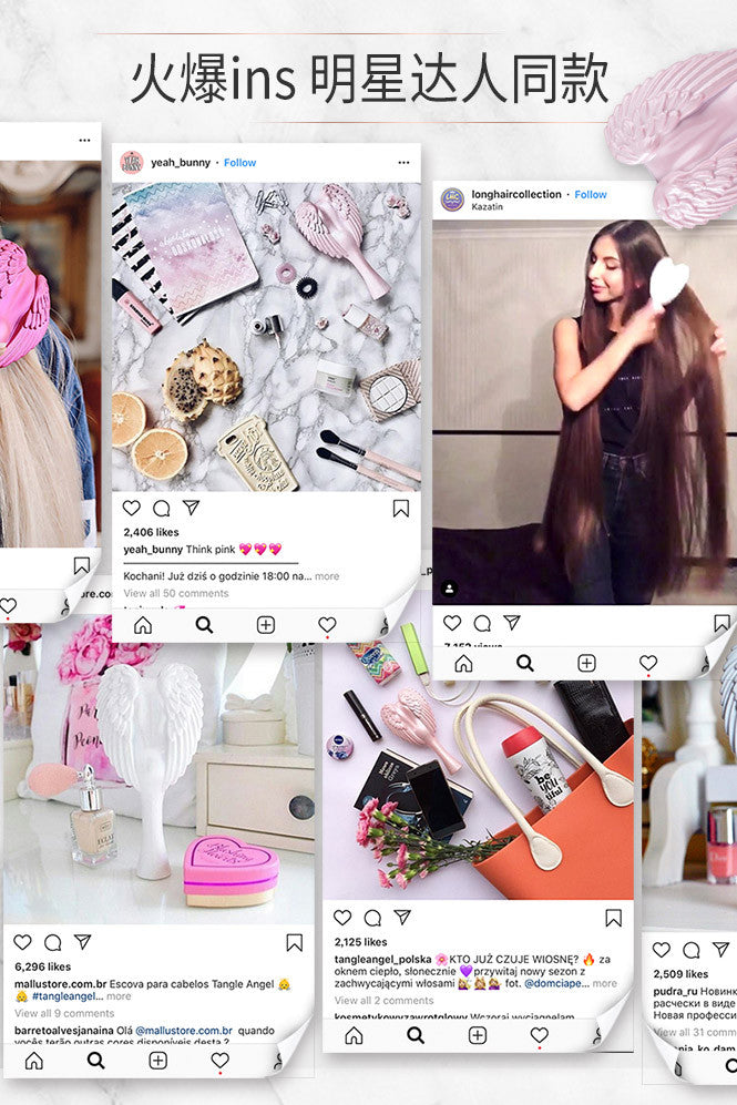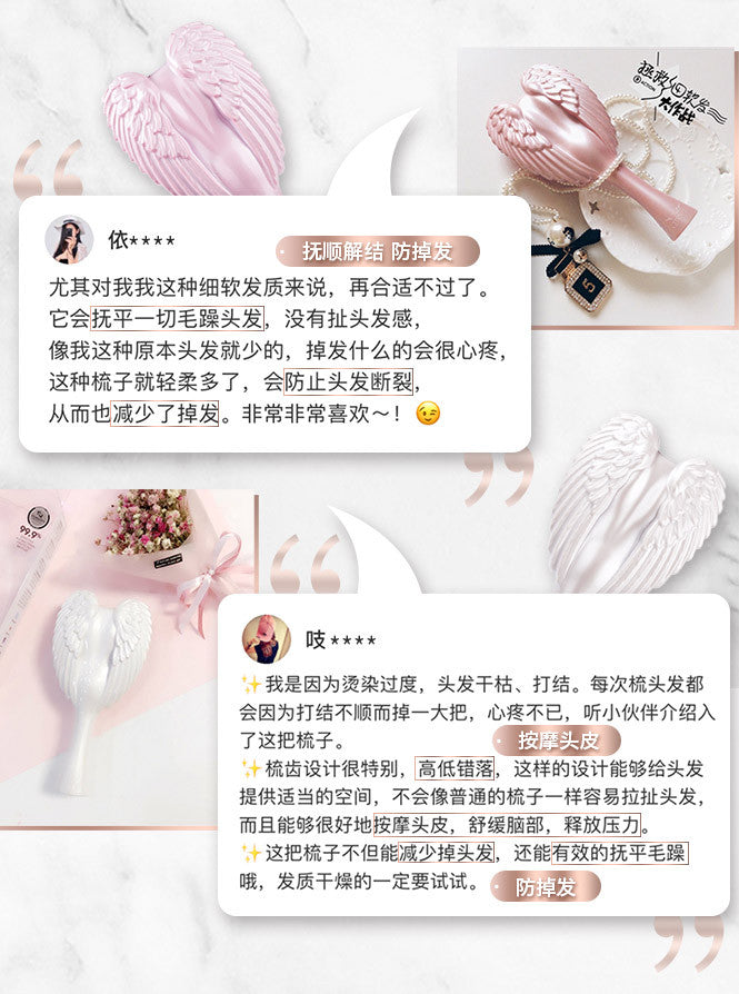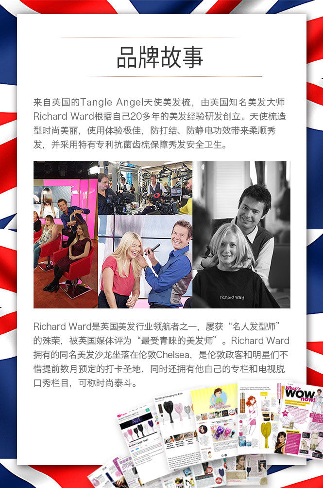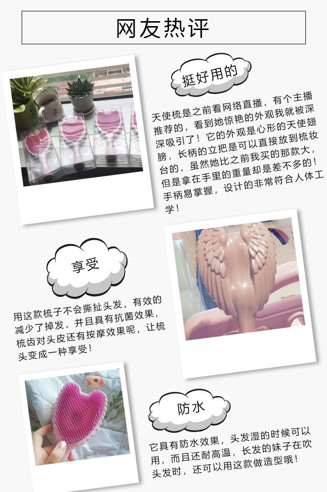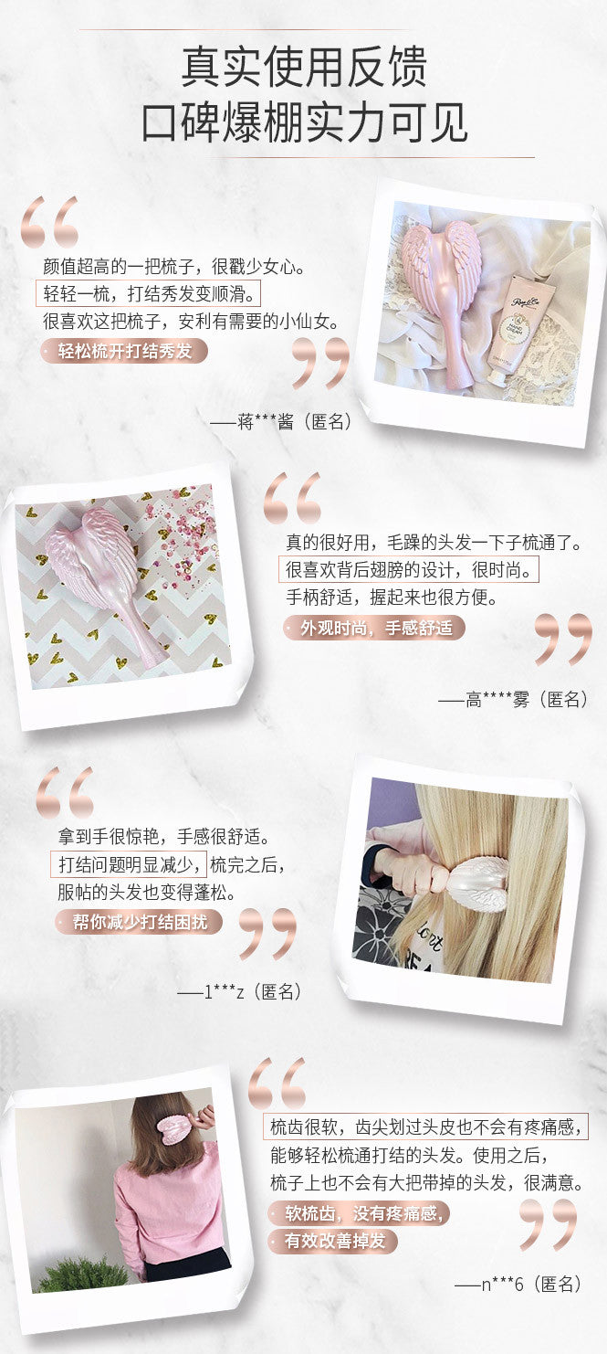 【自营】英国TANGLE ANGEL 天使按摩美发梳 天使梳 中号 1支装 粉色 盛世美颜 顺发 防脱发 抗静电梳子