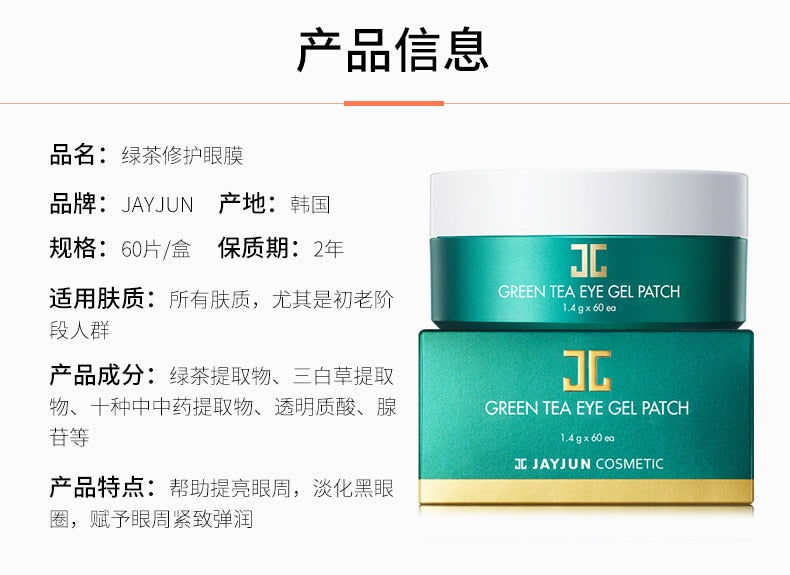 【自营】韩国 JAYJUN捷俊 绿茶修护眼膜贴 60片 使用前建议先涂抹眼部精华或眼霜 易于溶解眼膜贴