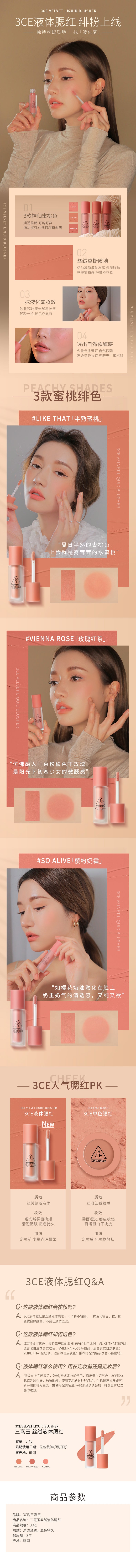 【自营】韩国3CE三熹玉 液体腮红 #LIKE THAT 半熟蜜桃 3.4g 丝绒液体修容胭脂自然