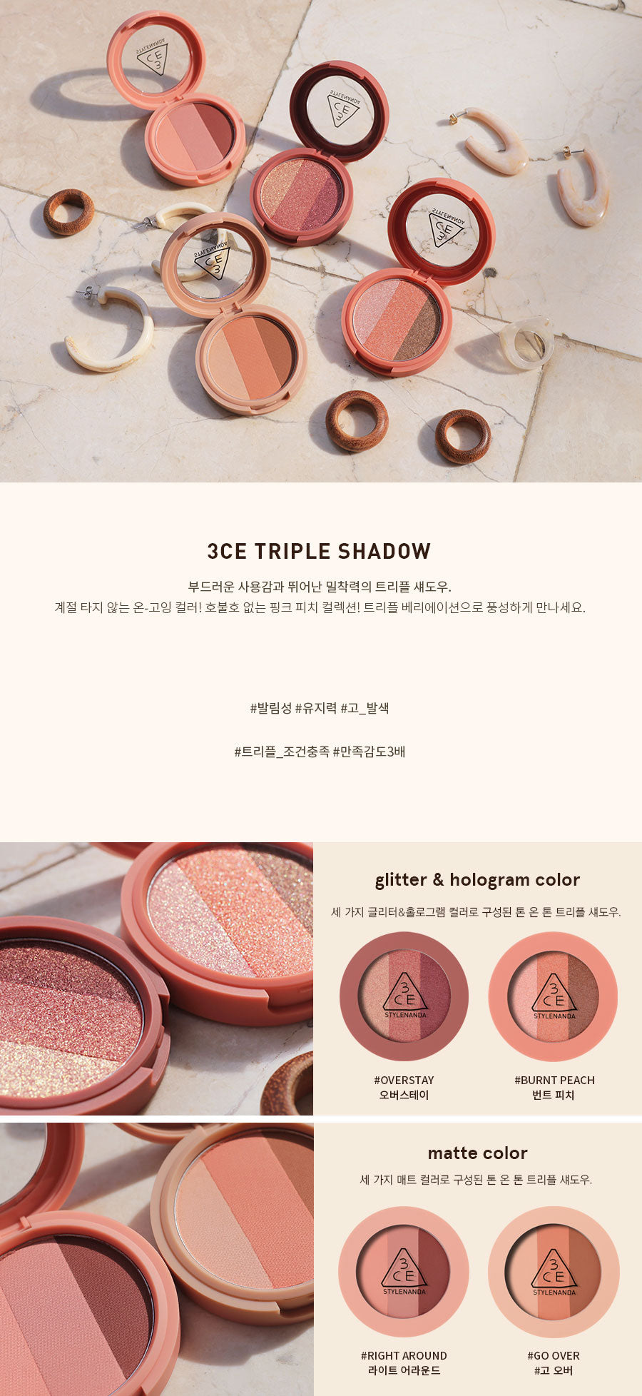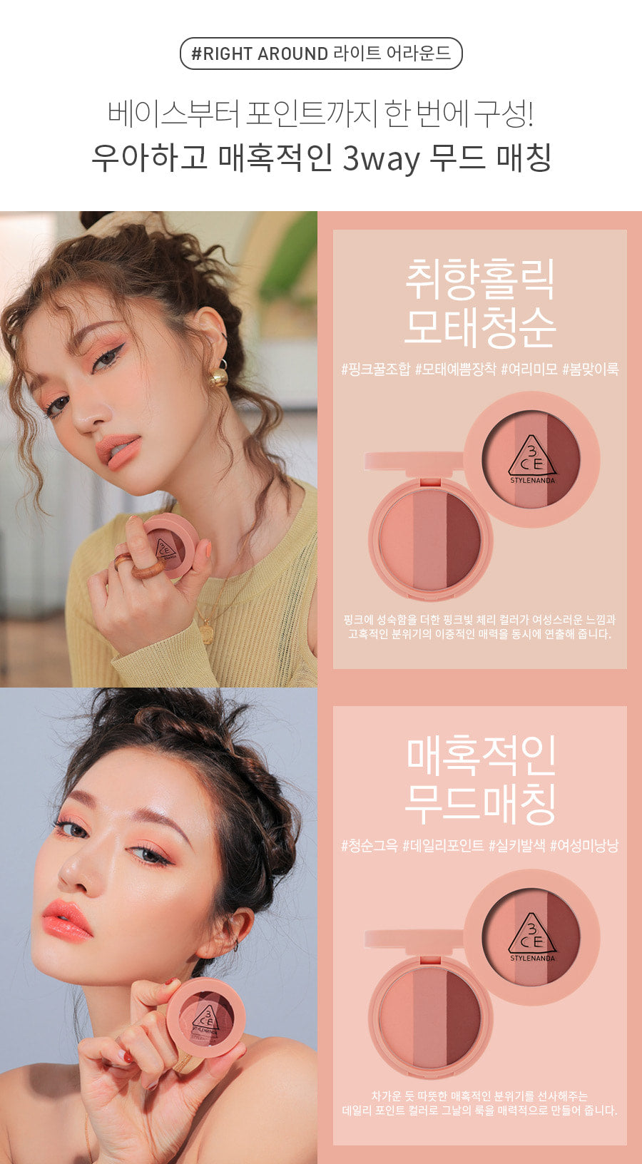 【自营】韩国3CE 三熹玉三色眼影盘 4g 新色日常妆 RIGHT AROUND