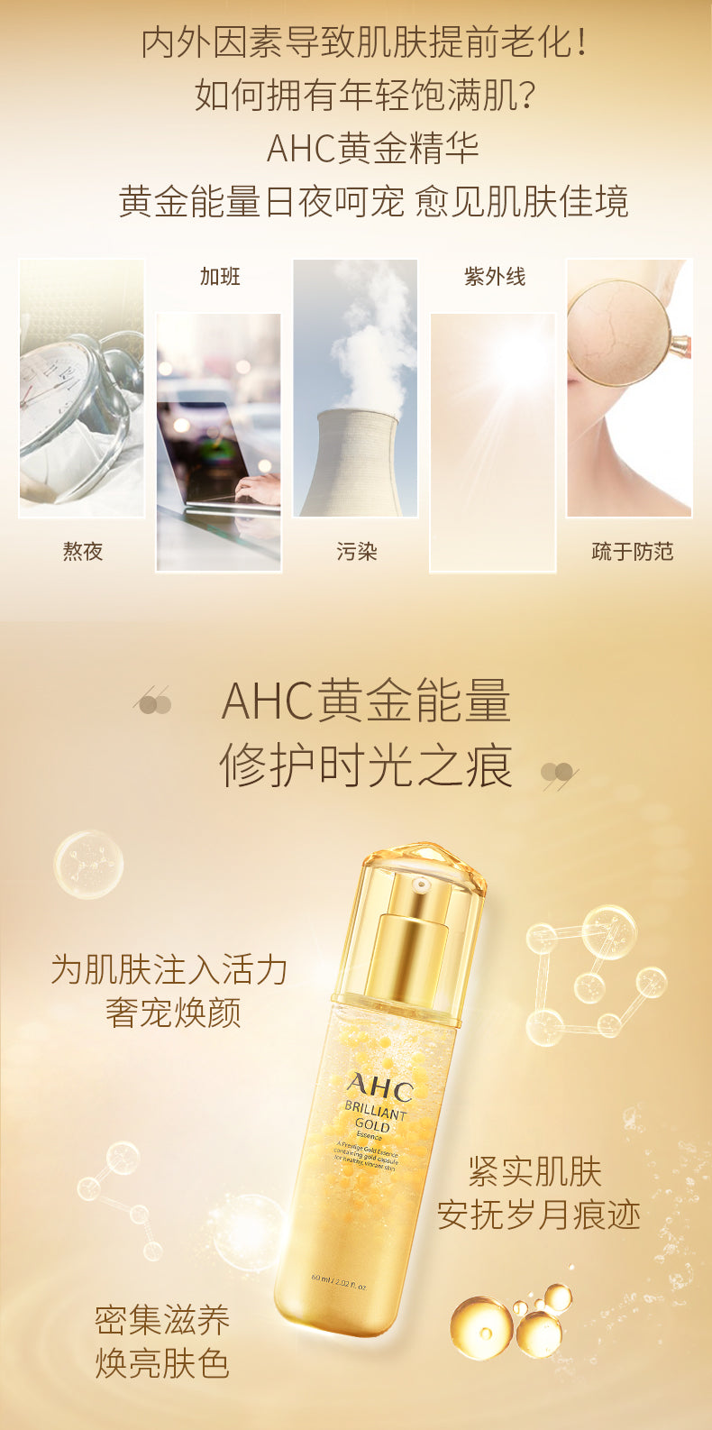 【自营】韩国AHC 新版黄金款保湿补水滋养修护肌肤精华液 60ml