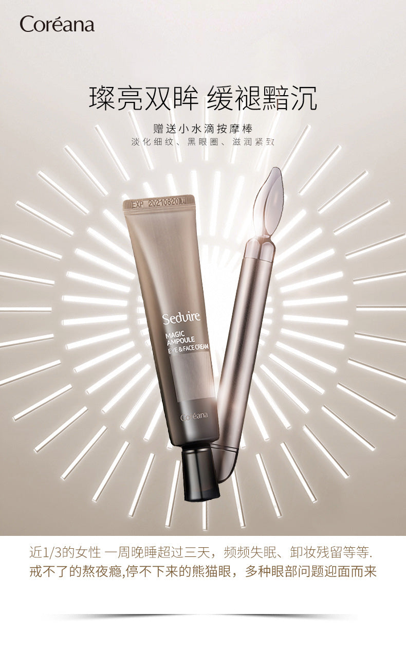 【自营】韩国COREANA高丽雅娜 斯谛魅眼霜 淡化细纹黑眼圈抗皱紧致眼霜 30g 附带按摩棒
