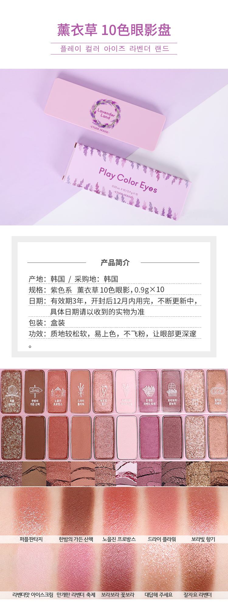 【自营】韩国ETUDE HOUSE伊蒂之屋(爱丽小屋) 冰激凌十色眼影盘 #Lavender Land薰衣草 单件入
