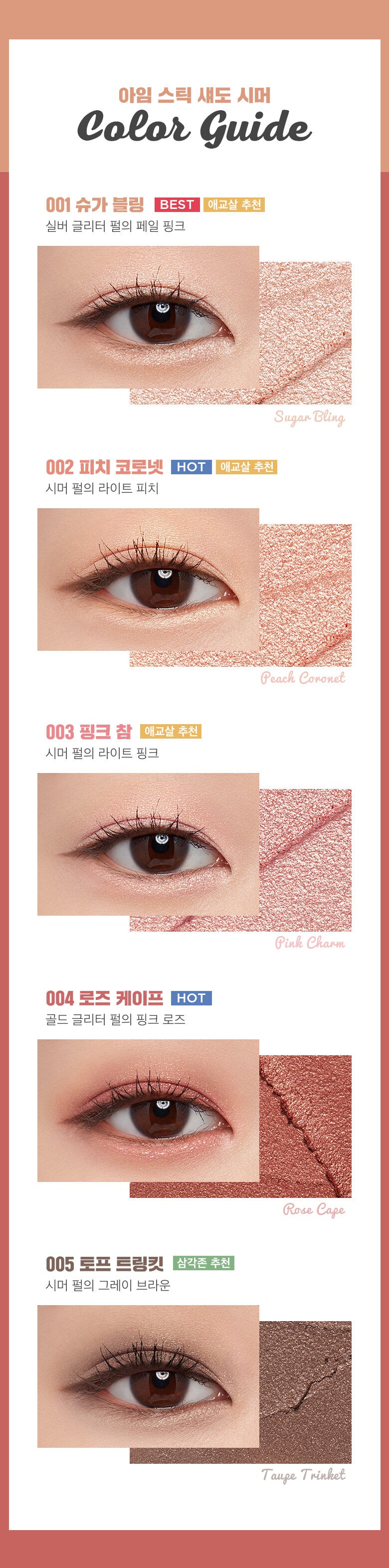 【自营】韩国I'M MEME爱蜜米 我爱珠光眼影棒 #002 蜜桃沙滩 Peach Coronet 0.9g 不易晕染眼影笔