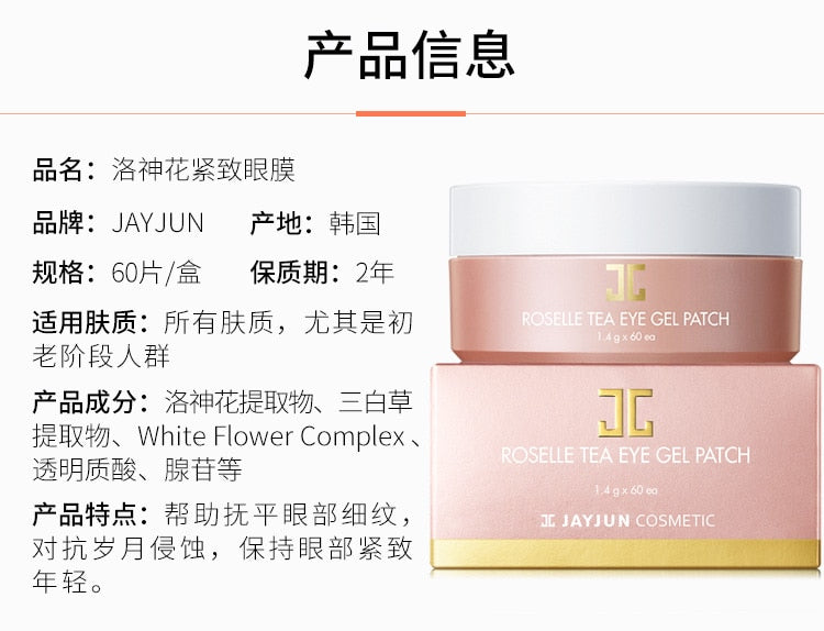 【自营】韩国JAYJUN捷俊 洛神花紧致眼膜贴 60片 使用前建议先涂抹眼部精华或眼霜 易于溶解眼膜贴