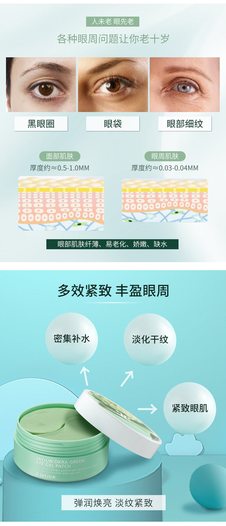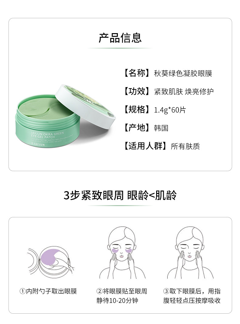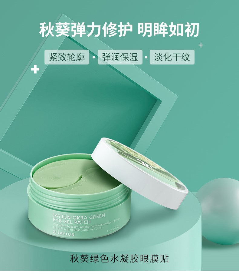 【自营】韩国JAYJUN捷俊 秋葵绿色水凝胶眼膜 1.4g×60片 淡化黑眼圈细纹眼袋补水提亮