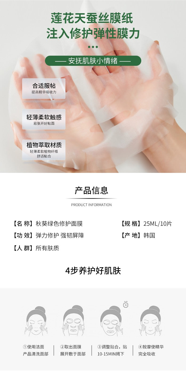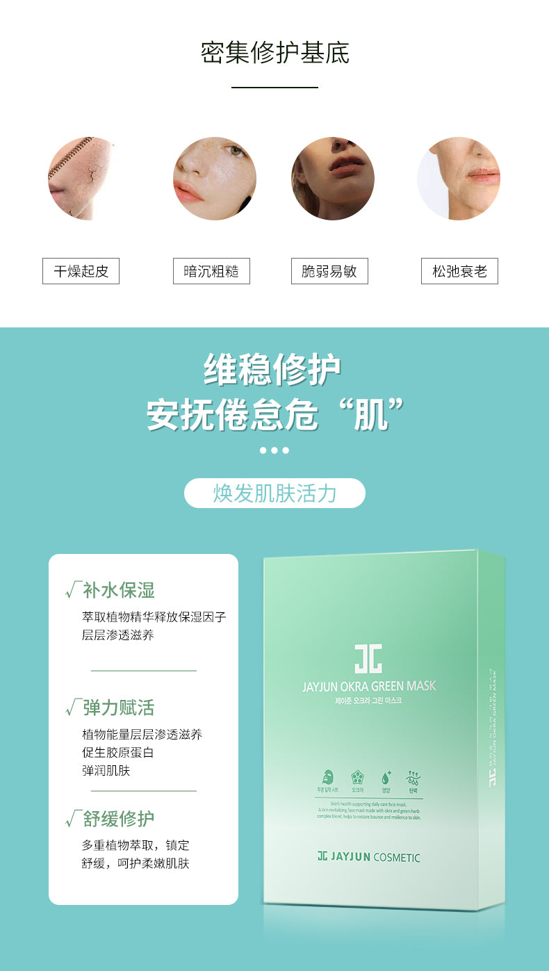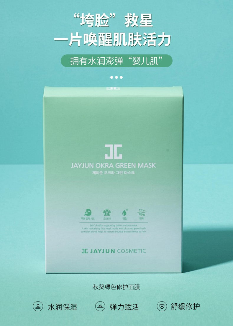 【自营】韩国JAYJUN捷俊 秋葵绿色镇定面膜 20ml×10片 弹力紧致