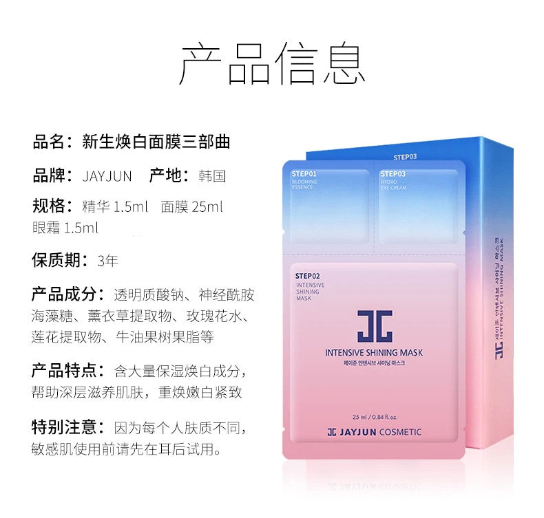 【自营】韩国JAYJUN 新生密集焕白面膜三部曲 单片入 25ml+1.5ml+1.5ml 樱花水光针补水面膜
