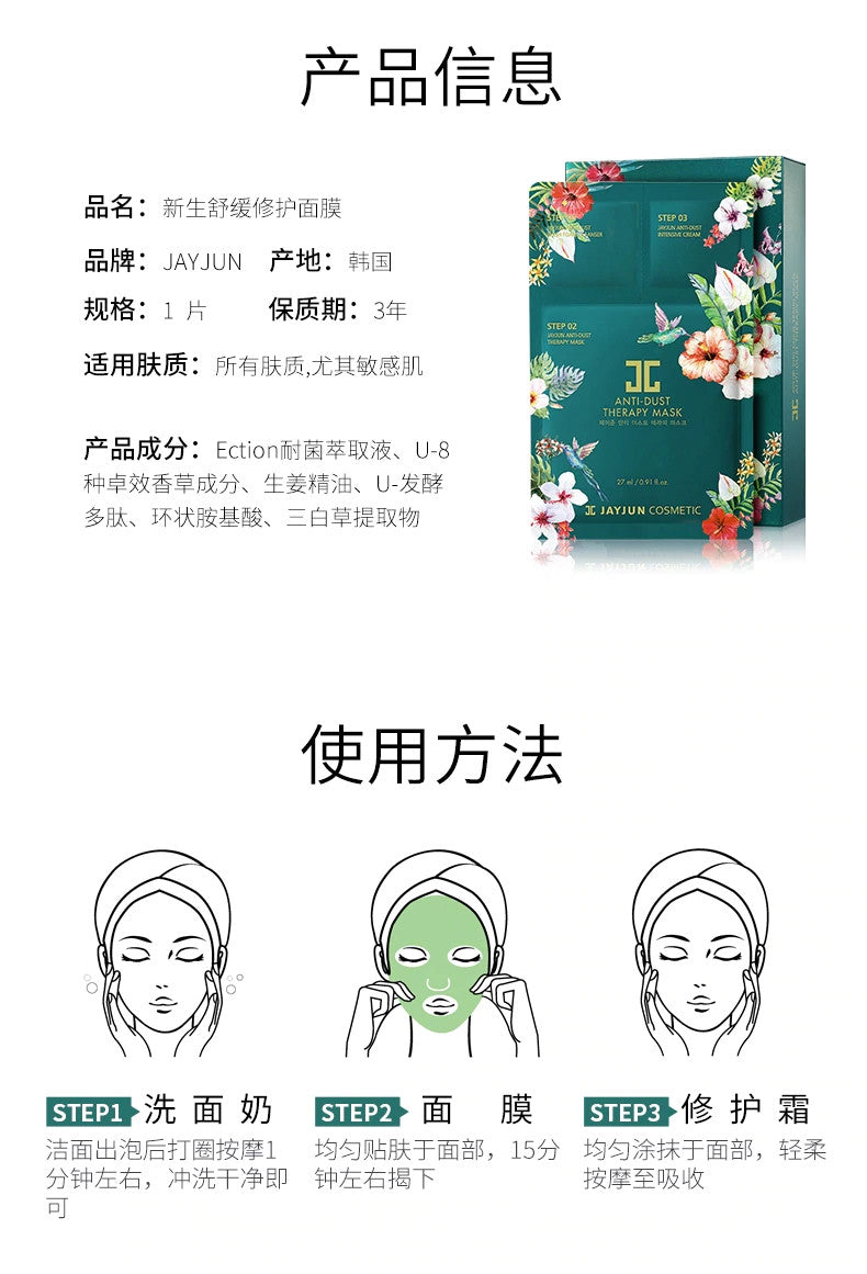 【自营】韩国JAYJUN 水光新生舒敏修护补水保湿面膜 单片入 27ml+15ml+15ml 舒缓补水敏感肌防雾霾