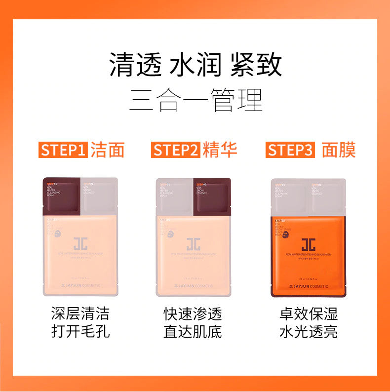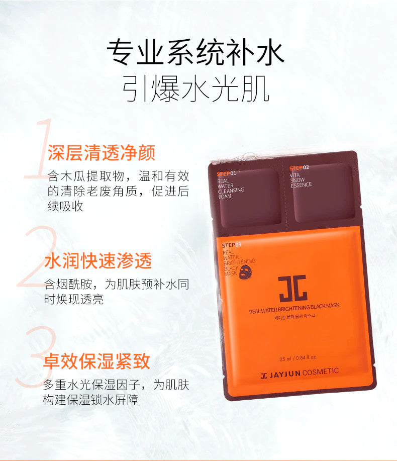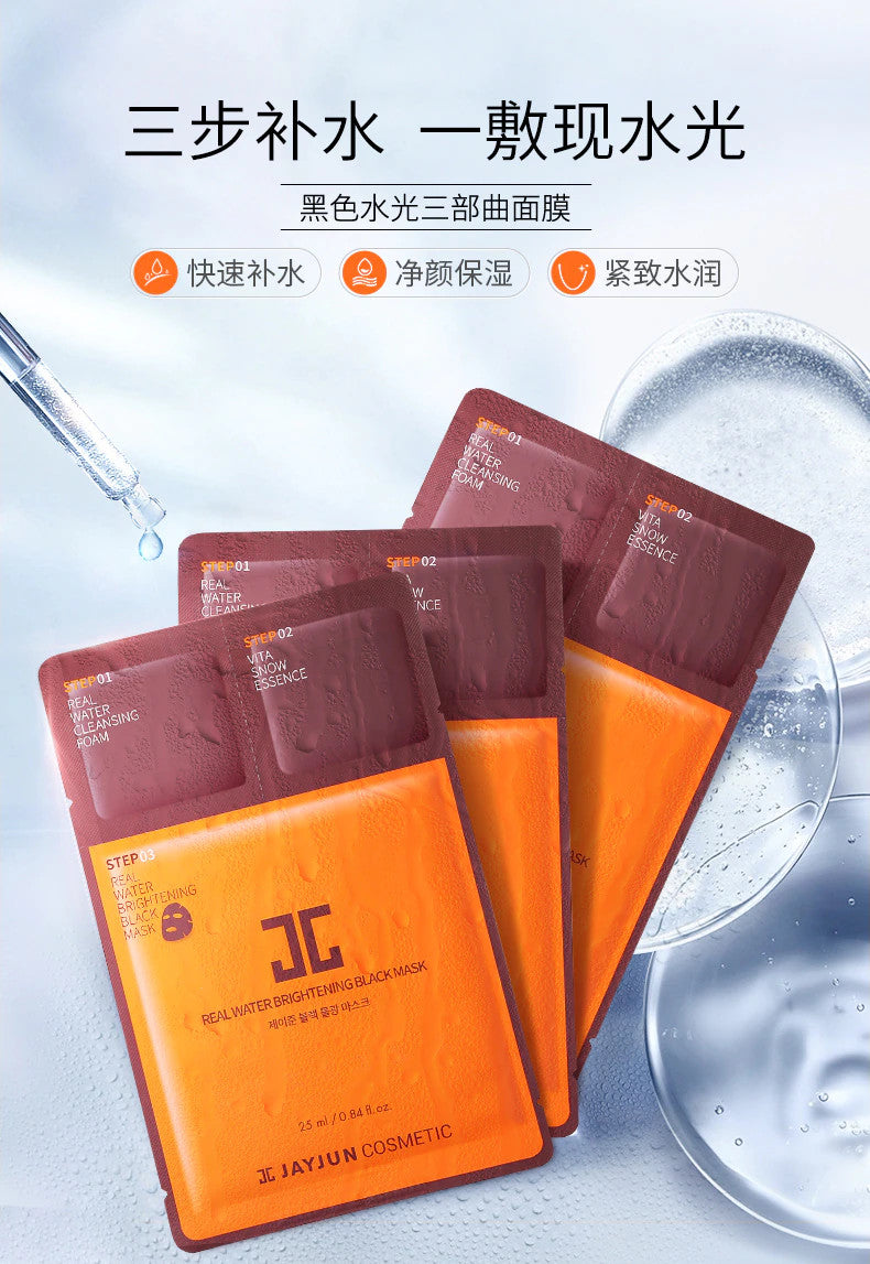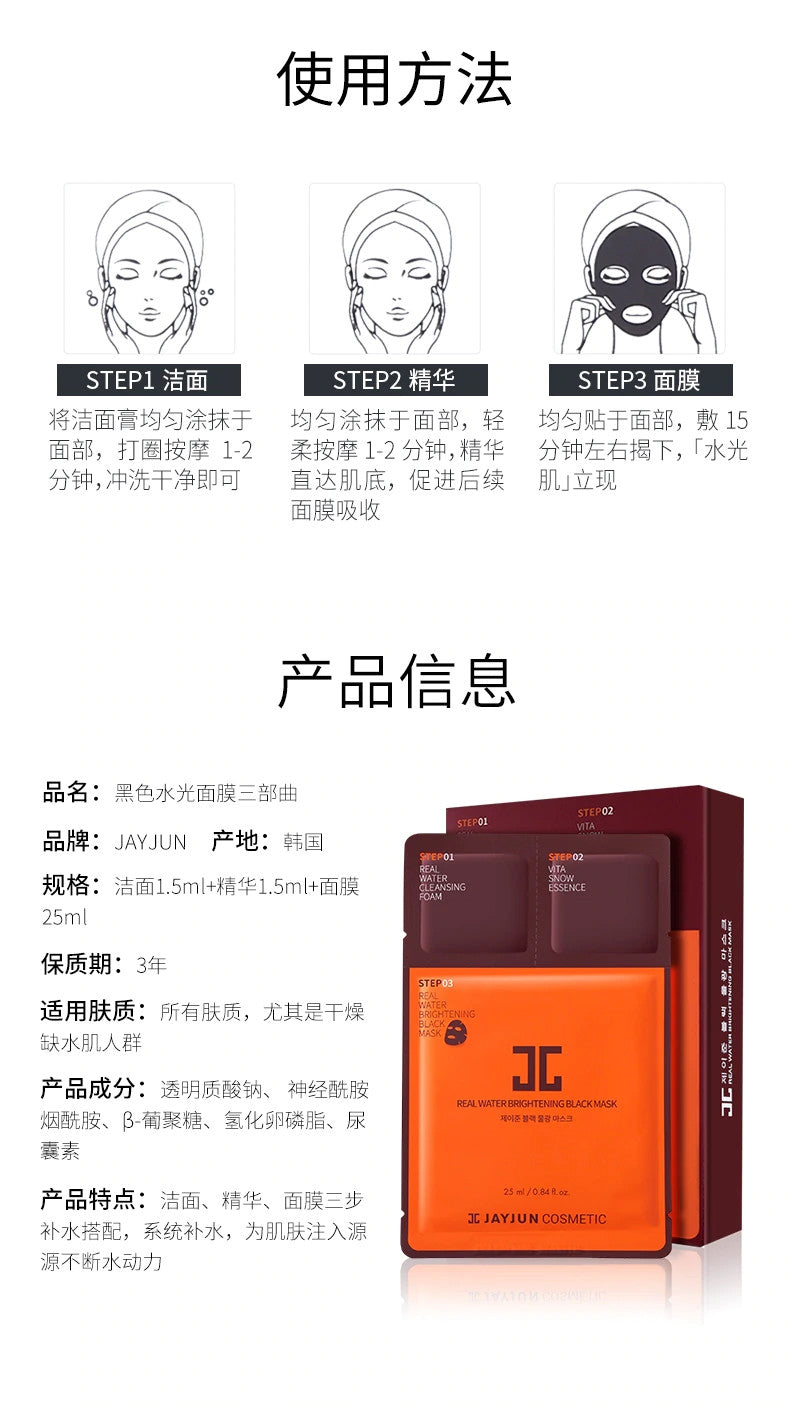 【自营】韩国JAYJUN 3-STEP三部曲水光针剂黑面膜 单片入 25ml+1.5ml+1.5ml 补水保湿水光针