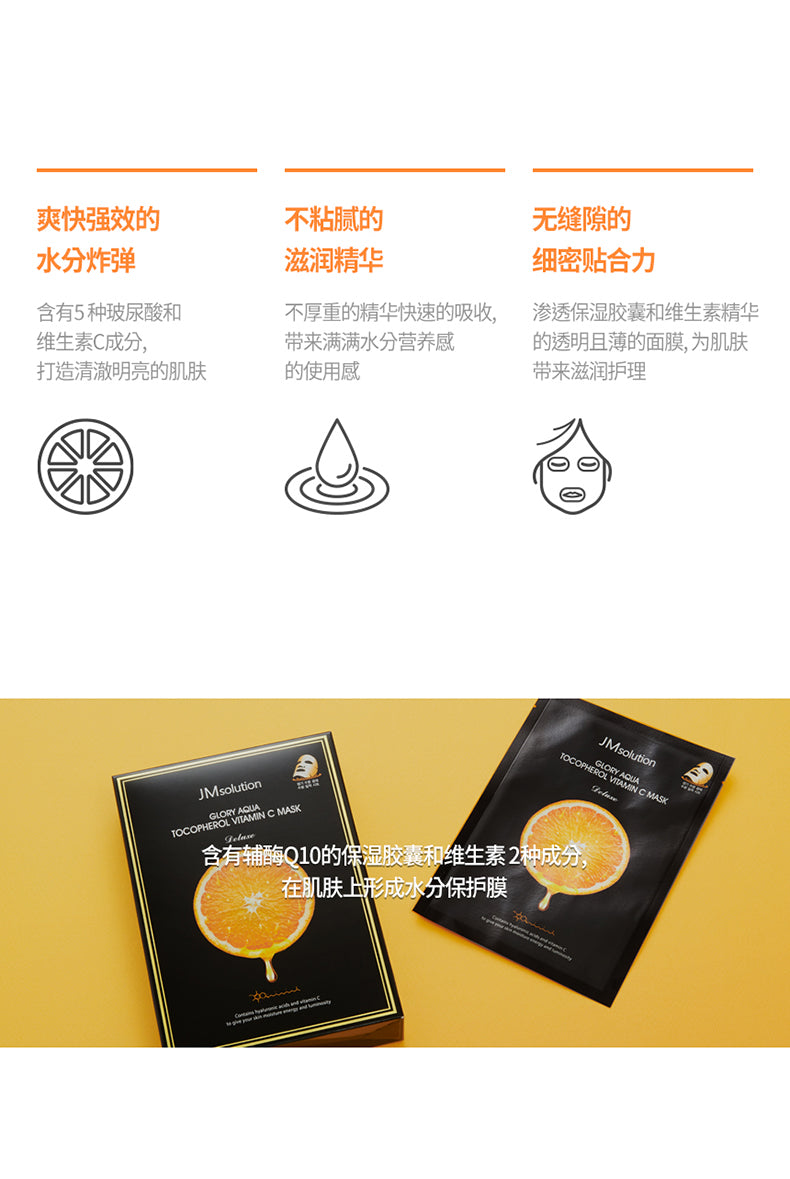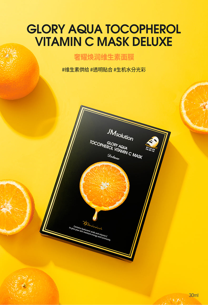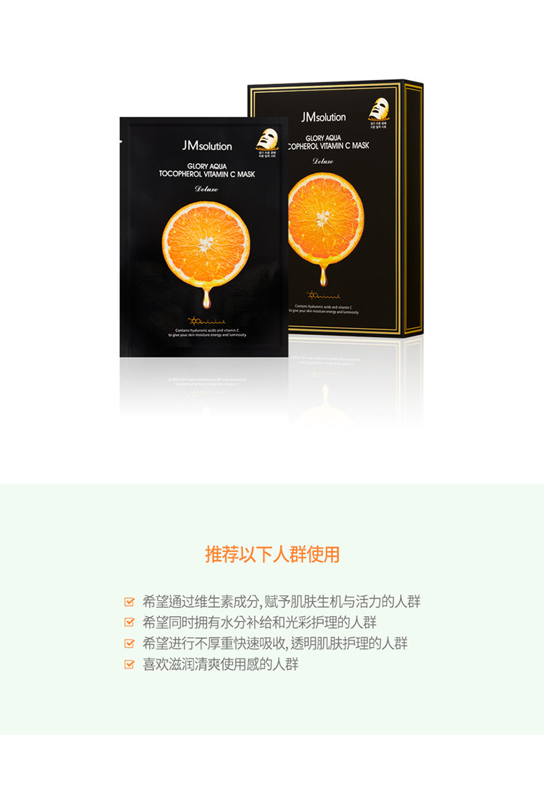 【自营】韩国JM SOLUTION肌司研 奢耀焕润鲜橙维生素C面膜 奢华版 30ml 单枚入 急救补水 保湿美白 祛痘淡斑淡化痘
