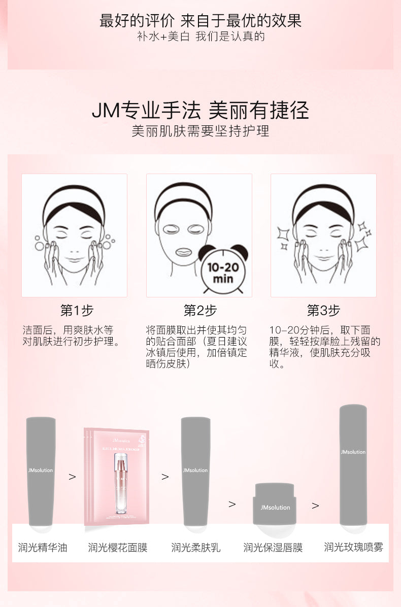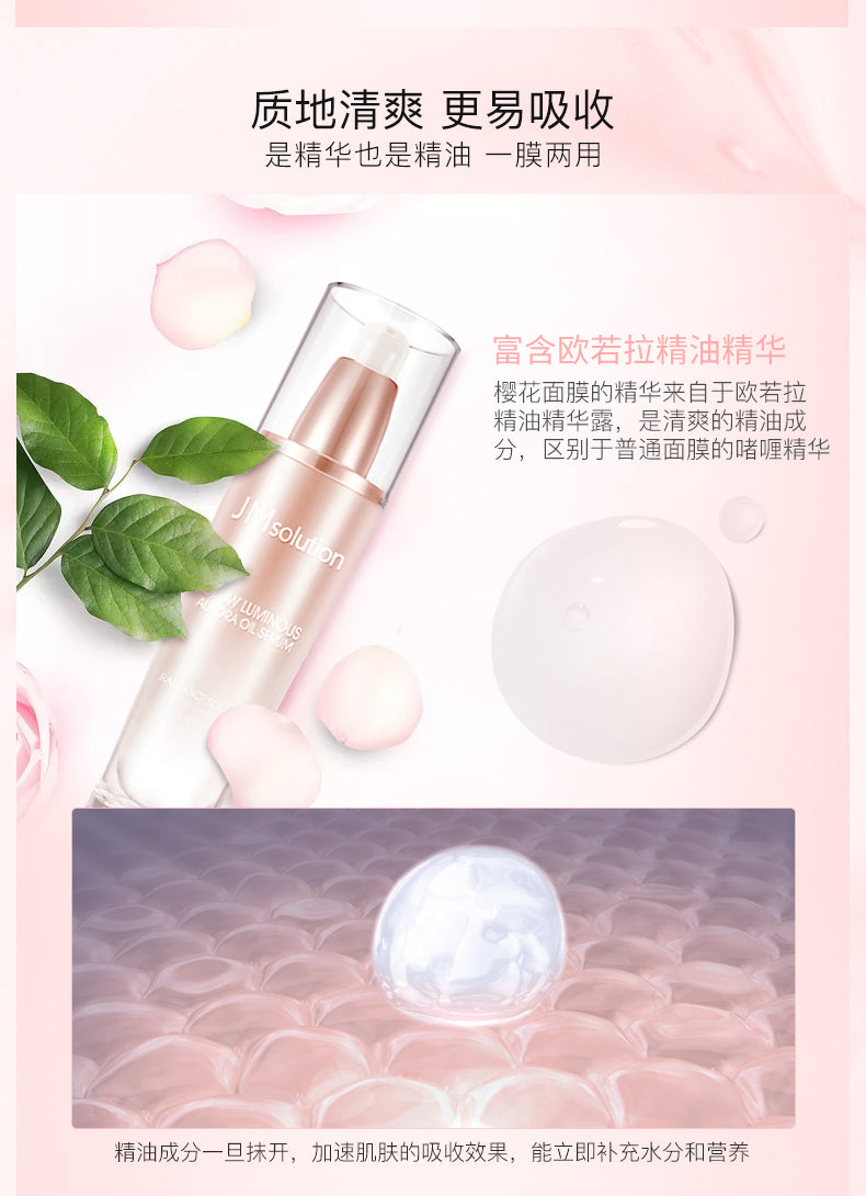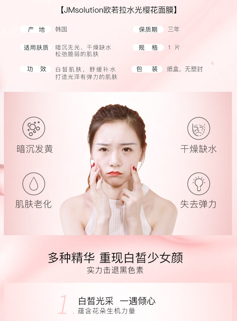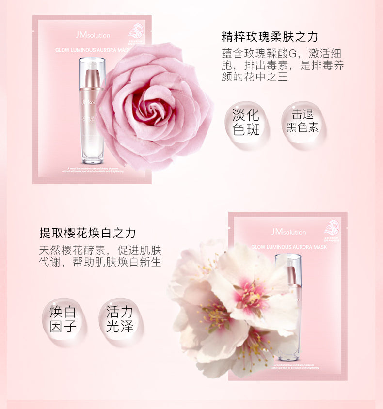 【自营】韩国JM SOLUTION 肌司研 欧若拉水光樱花面膜 30ml 单枚入 补水保湿提亮肤色