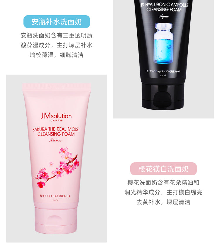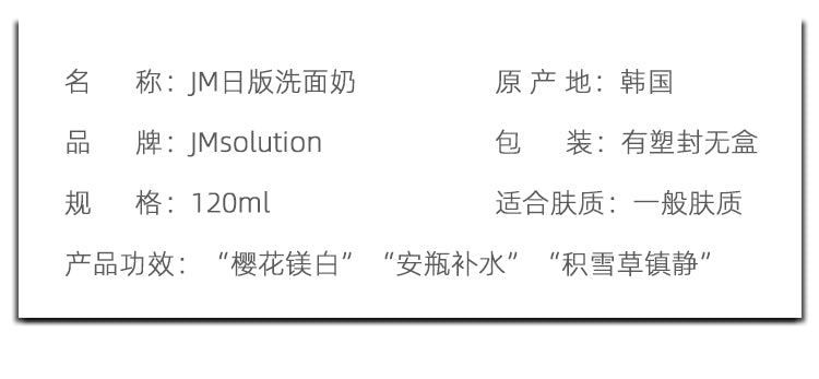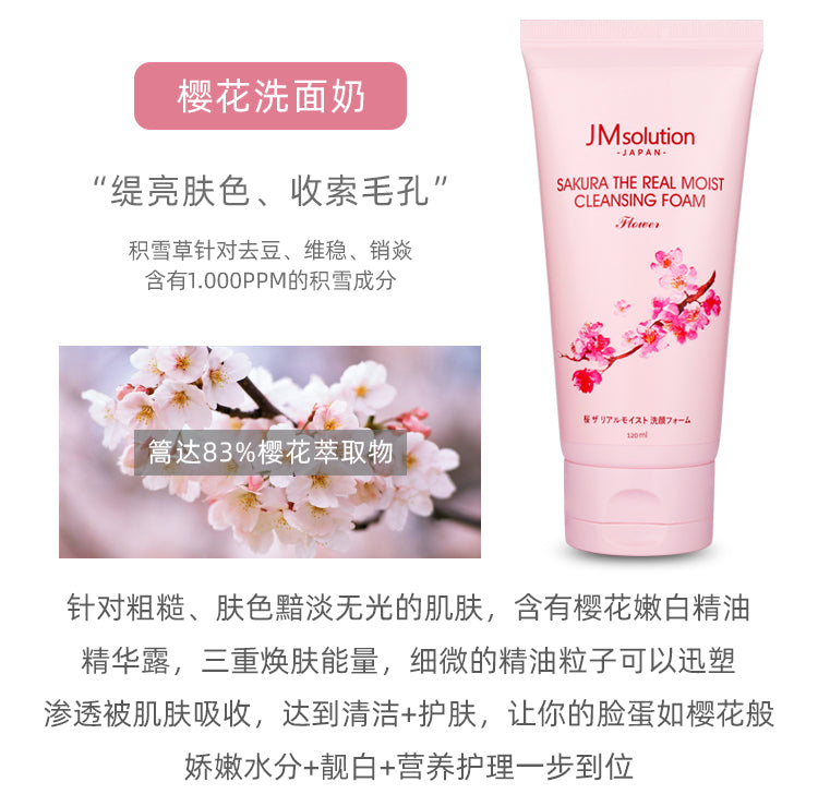 【自营】韩国JM SOLUTION 肌司研日本版 樱花焕白清洁洗面奶 120ml 补水提亮 滋润保湿