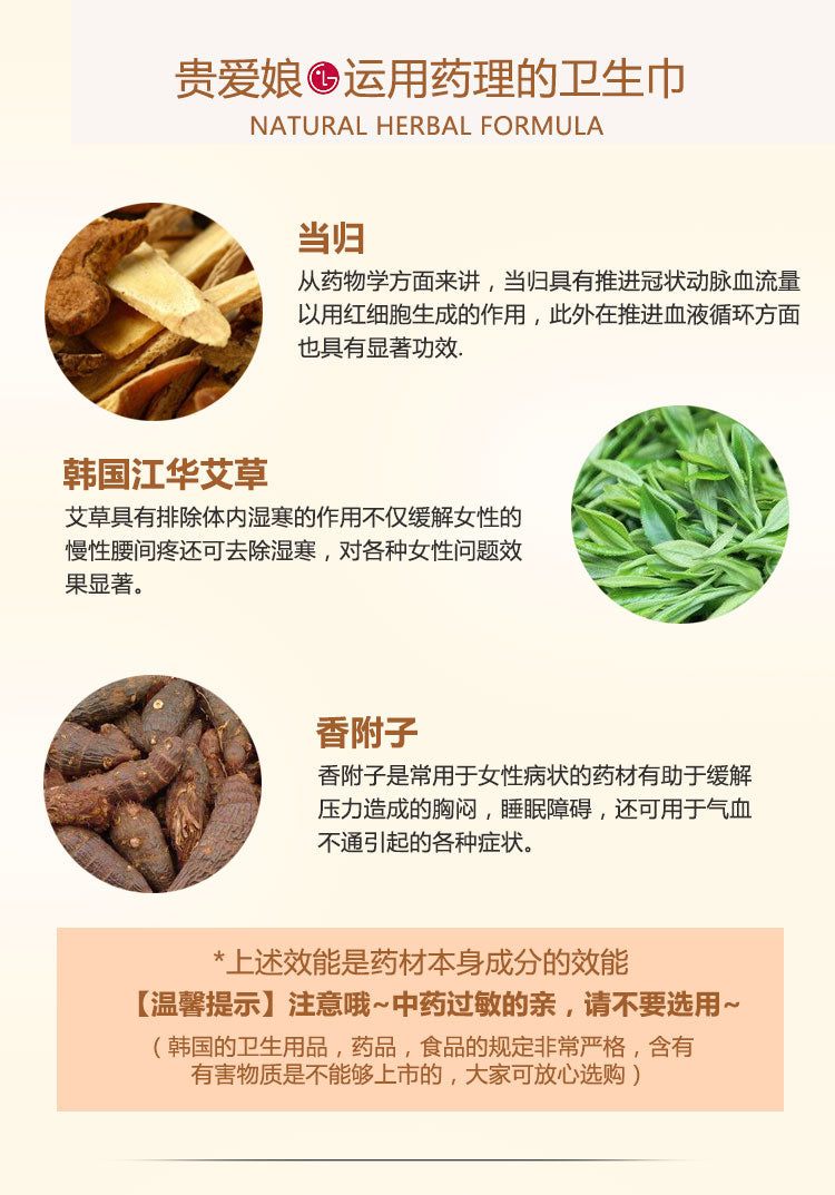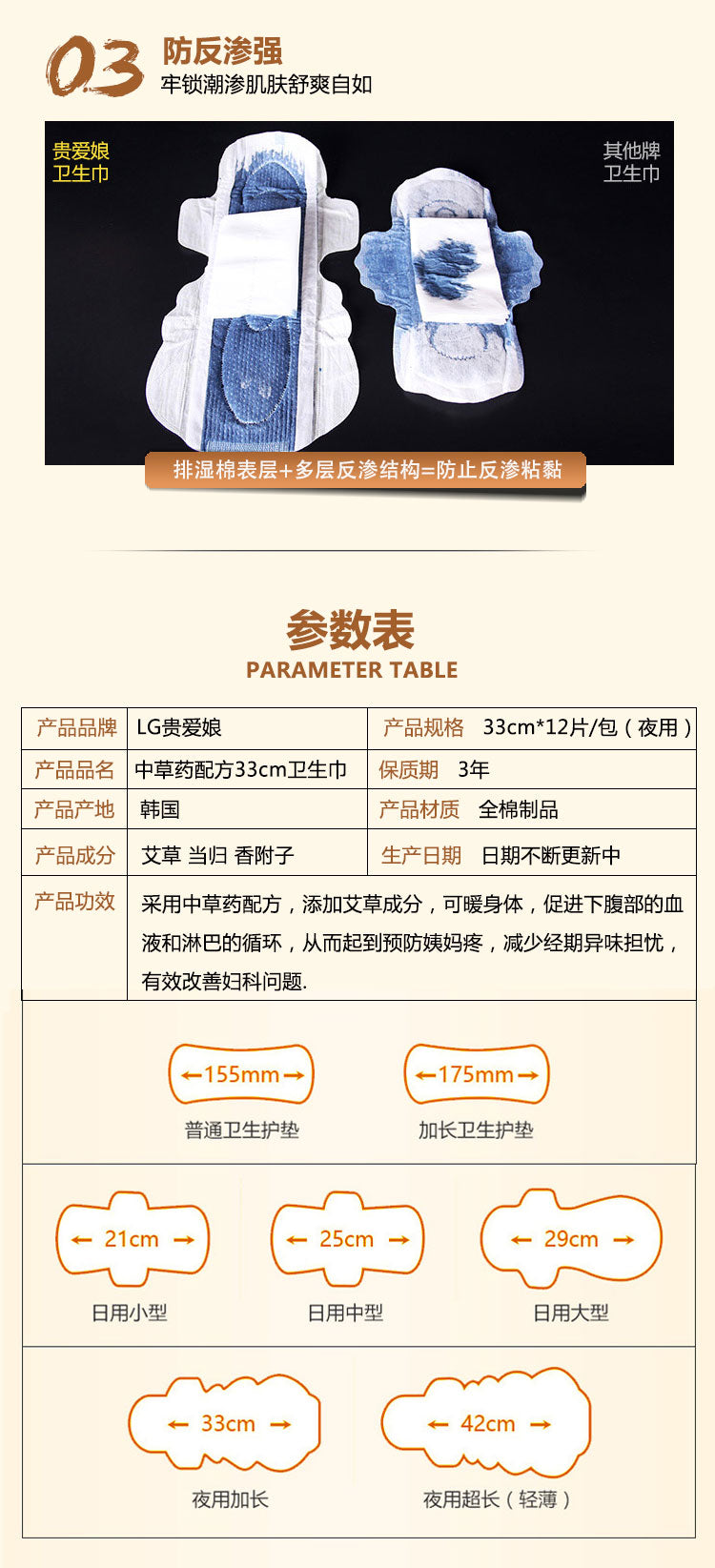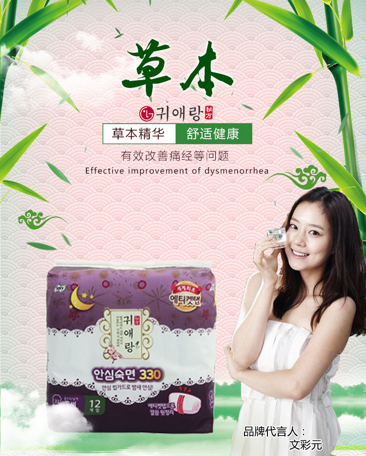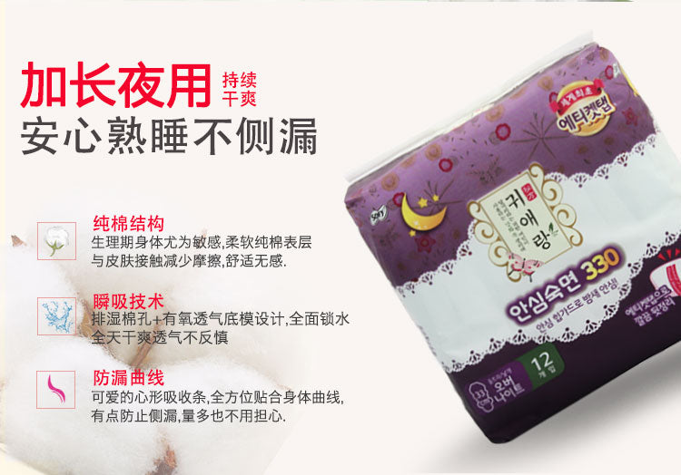 【自营】韩国LG闺艾朗 原贵爱娘 韩方中草药夜用卫生巾 有护翼 33cm 12枚入