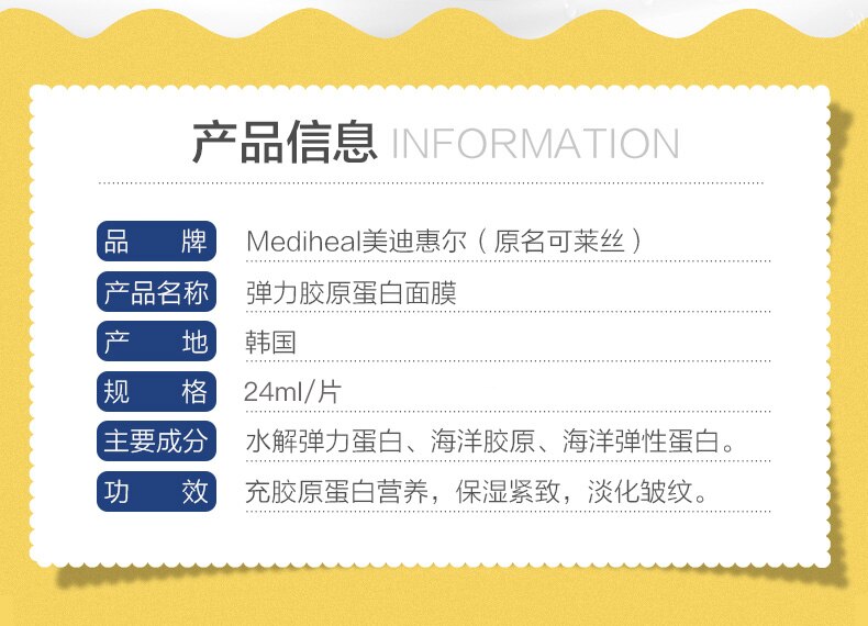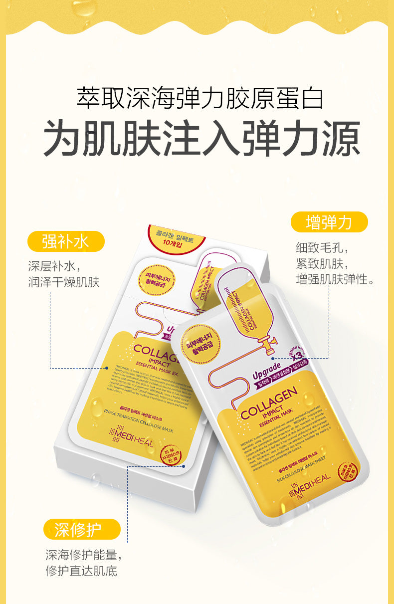 【自营】韩国MEDIHEAL美迪惠尔(可莱丝) 新版胶原蛋白补水面膜贴 1片装 24ml 保湿弹力紧致