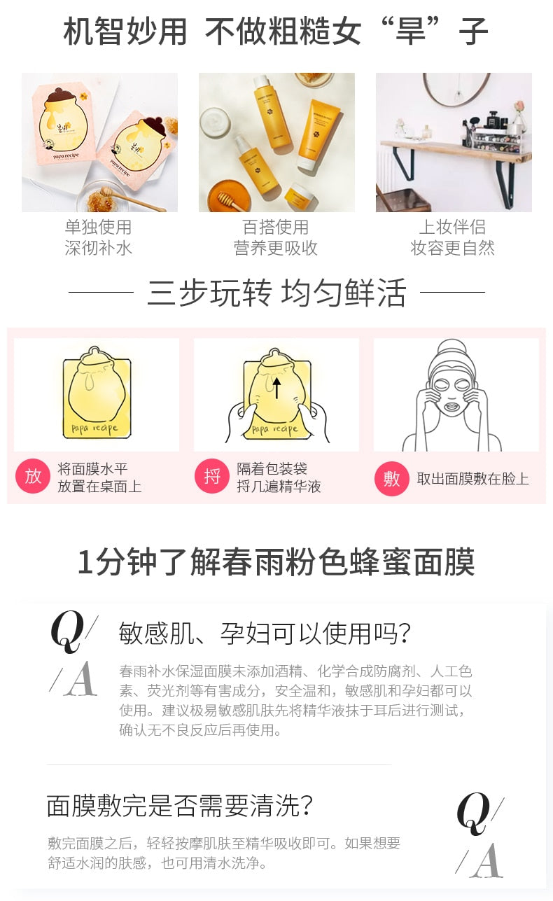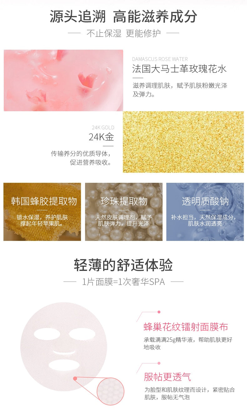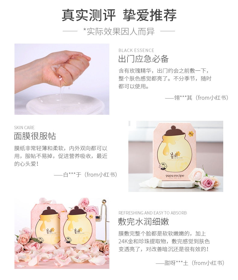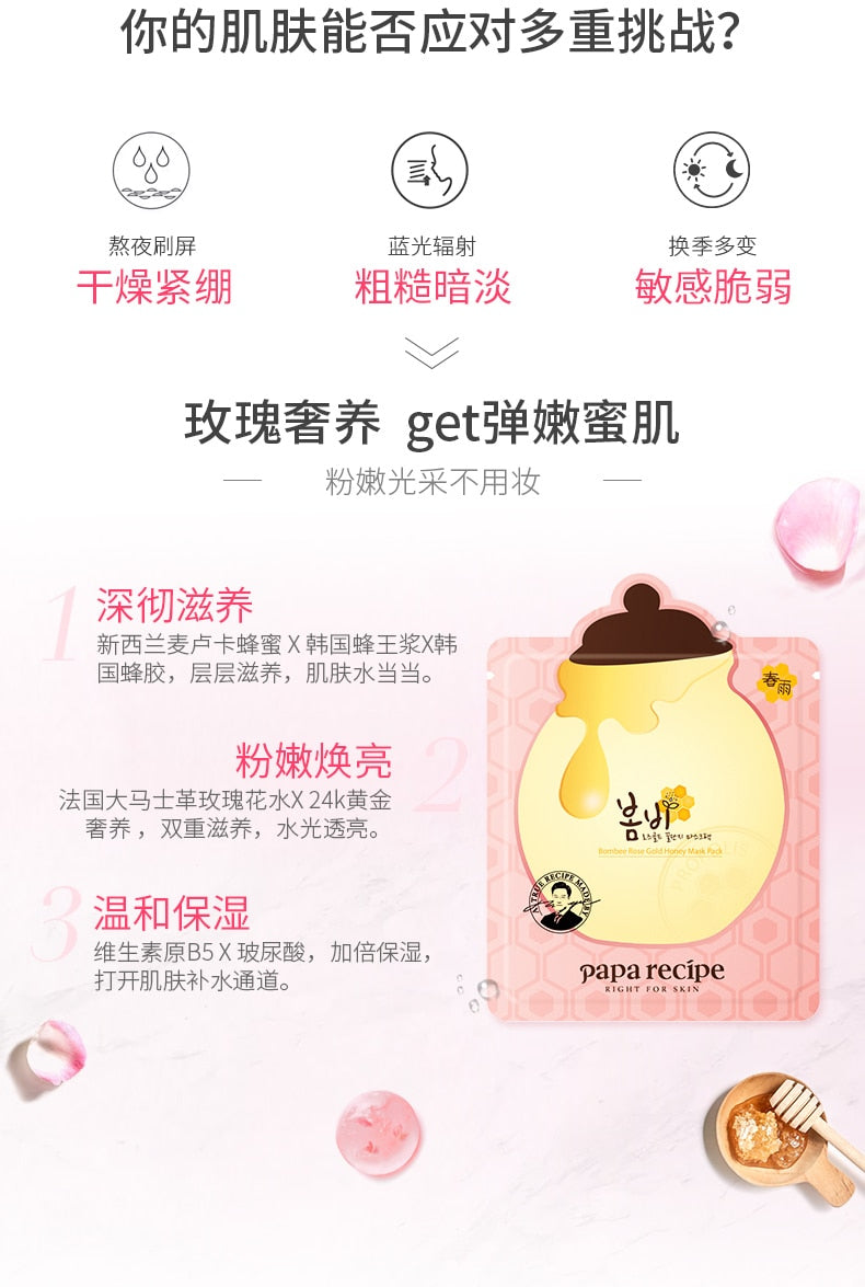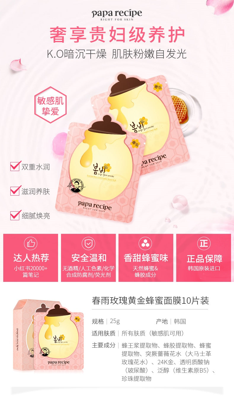 【自营】韩国PAPA RECIPE 春雨玫瑰24K黄金蜂巢蜂王浆滋养补水面膜 25g 单片入