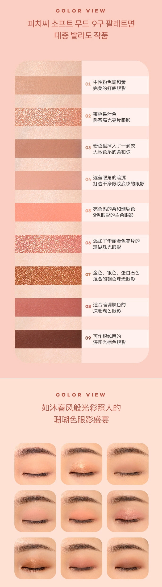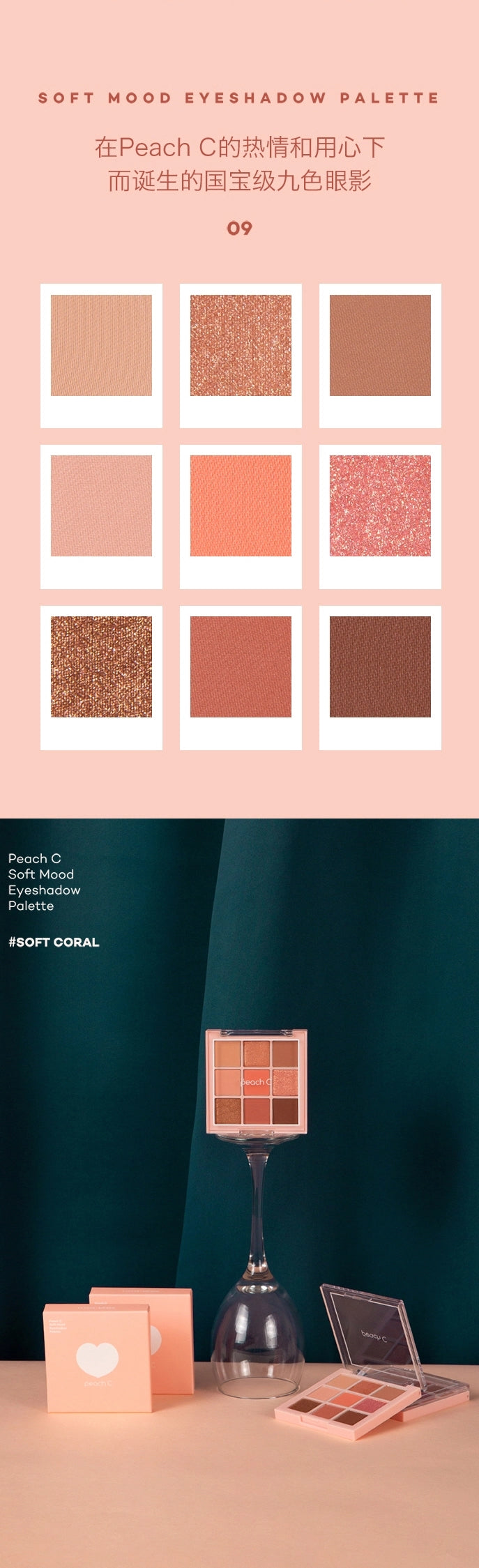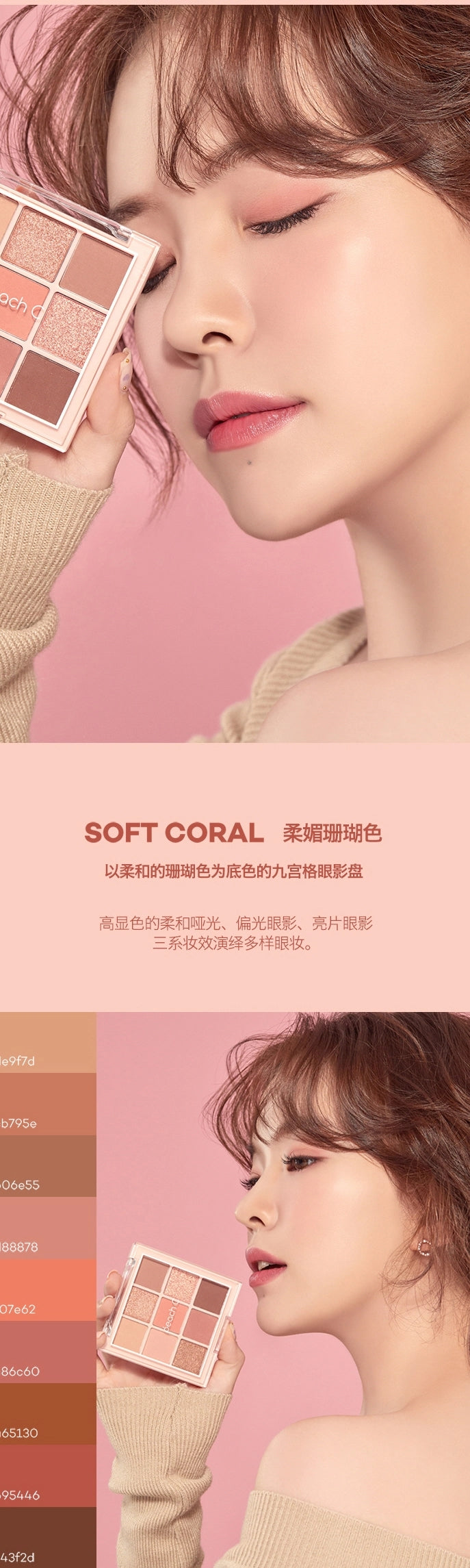 【自营】韩国Peach C 九宫格柔媚多彩眼影盘 64g Soft Coral 柔媚珊瑚色 网红款 INS超火