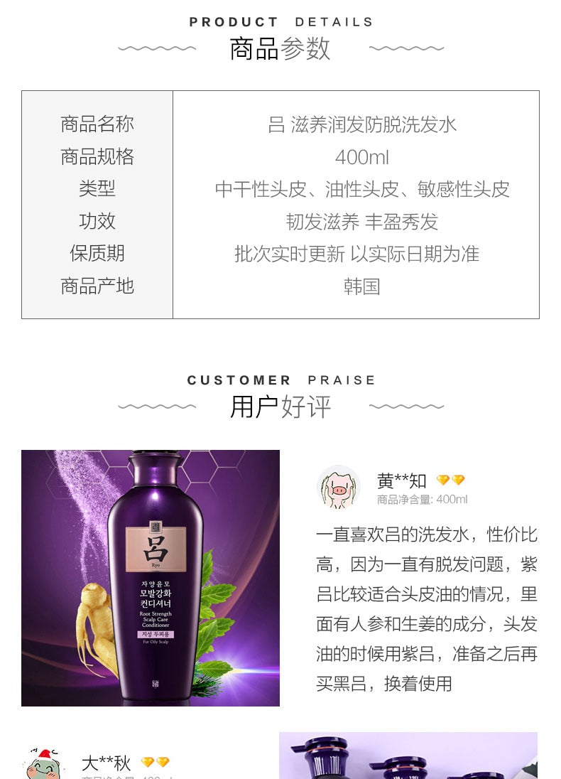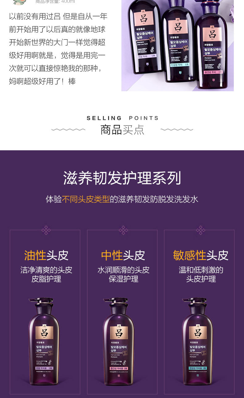【自营】韩国RYO吕 紫色防脱发固发滋养洗发水 400ml 适合油性发质款