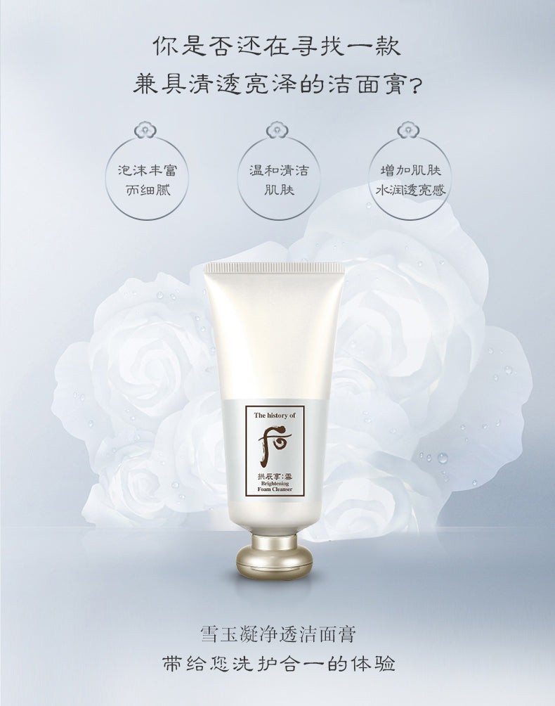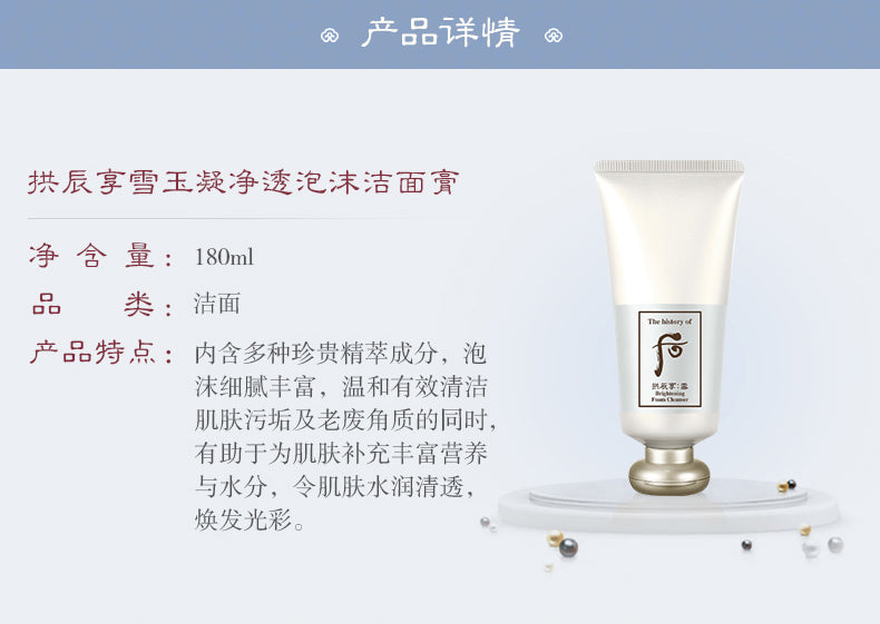 【自营】韩国THE HISTORY OF WHOO后 拱辰享洗面奶 雪玉凝泡沫洁面膏 180ml