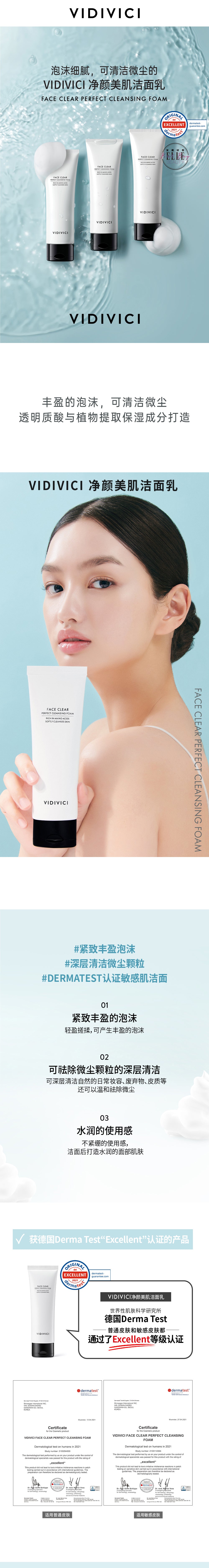 【自营】韩国VIDIVICI 女神氨基酸深层净颜美肌洁面乳 120ml 绵密泡沫深层清洁细腻光滑