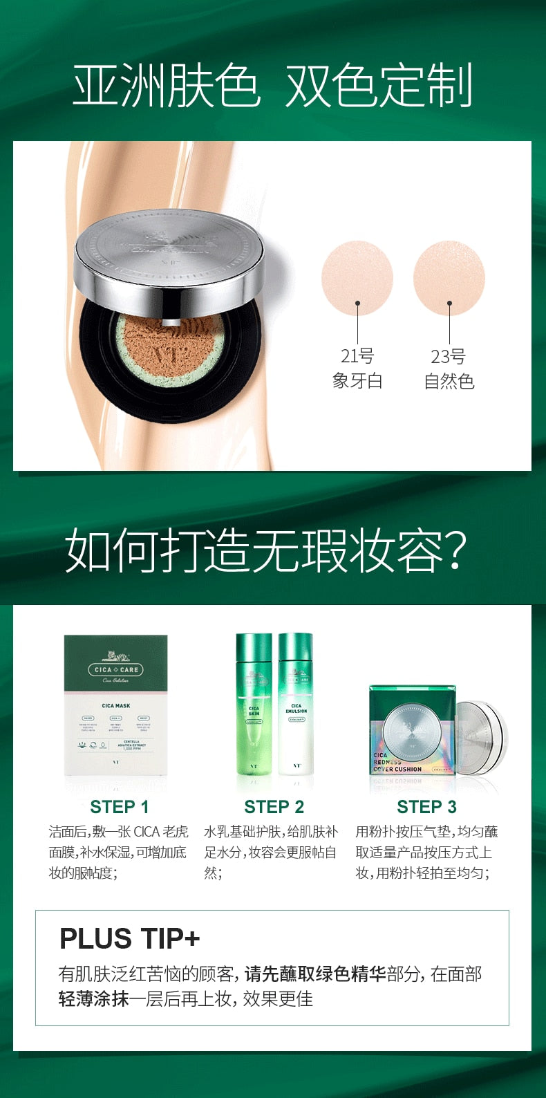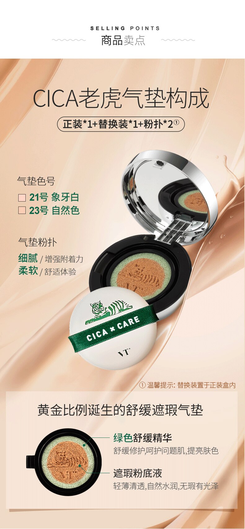 【自营】韩国VT COSMETICS范特 抗痘CICA积雪草老虎气垫 #23自然色