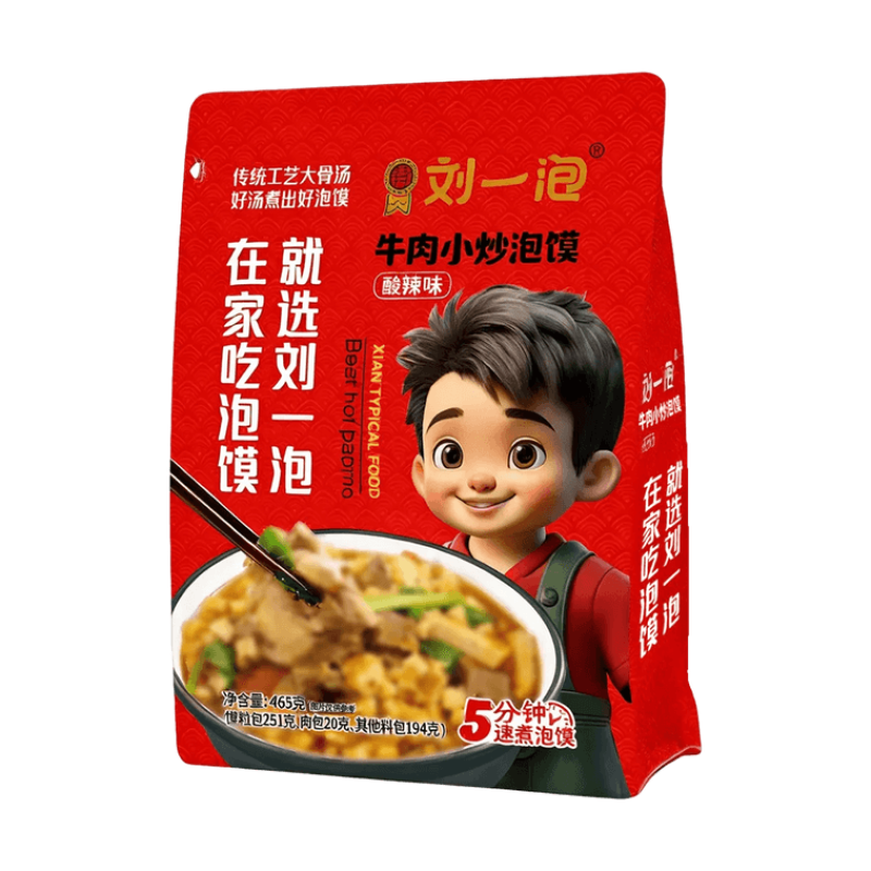 【自营】中国刘一泡 全新系列牛肉风味小炒泡馍 酸辣味 465g 陕西西安特产 半成品速食 还原堂食风味