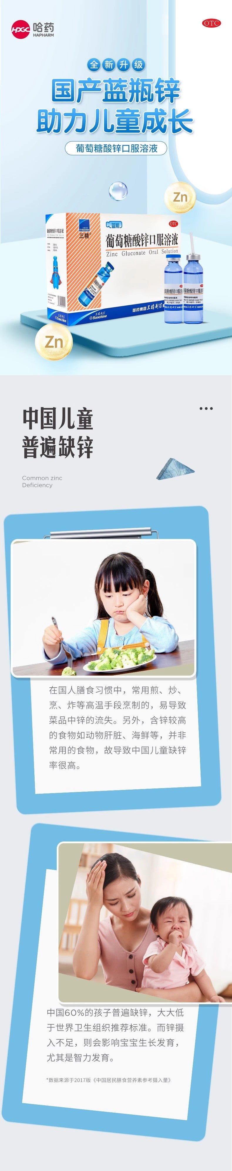 【自营】中国哈药 三精牌 葡萄糖酸锌口服液 10ml*12瓶 儿童补锌葡萄糖酸锌溶液