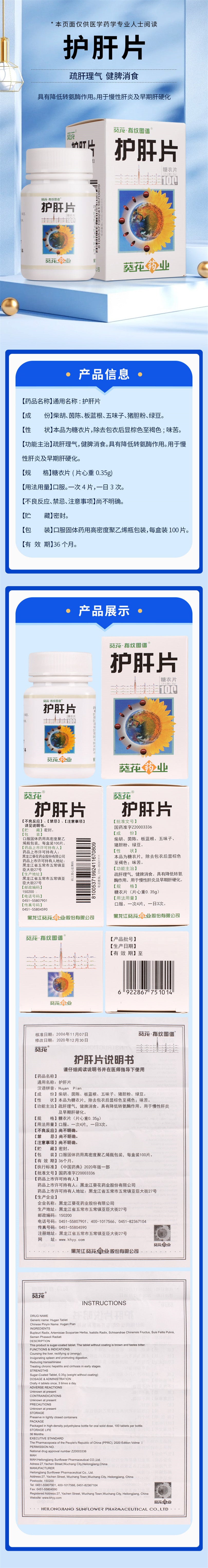 【自营】中国葵花药业 护肝片 100片 疏肝理气健脾消食降低转氨酶 保肝护肝