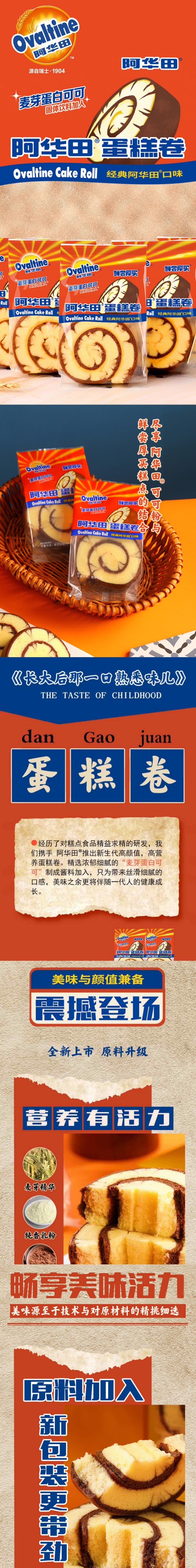 【自营】中国阿华田 风味蛋糕卷 220g 早餐面包蛋糕点心瑞士卷休闲零食小吃