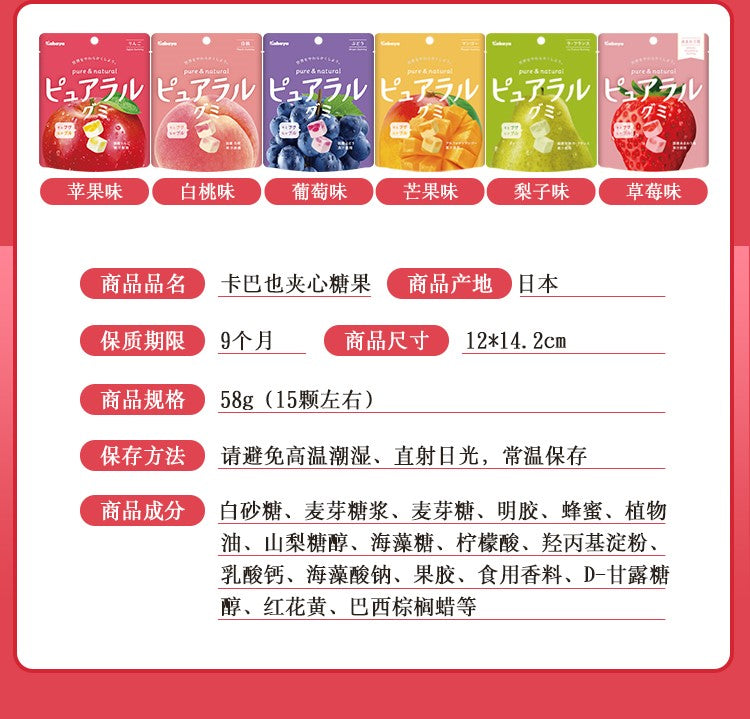 【自营】日本KABAYA卡巴也 果汁夹心软糖 苹果味 58g