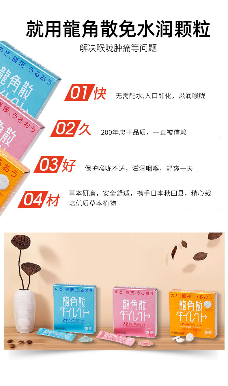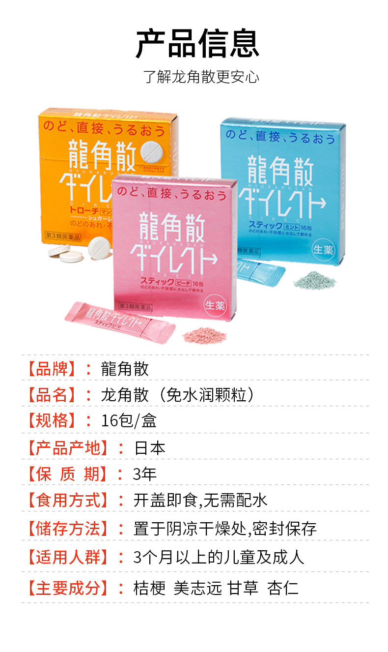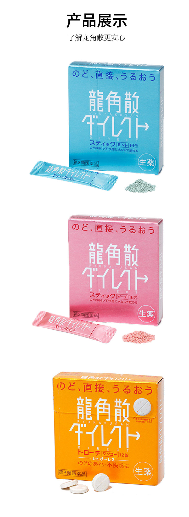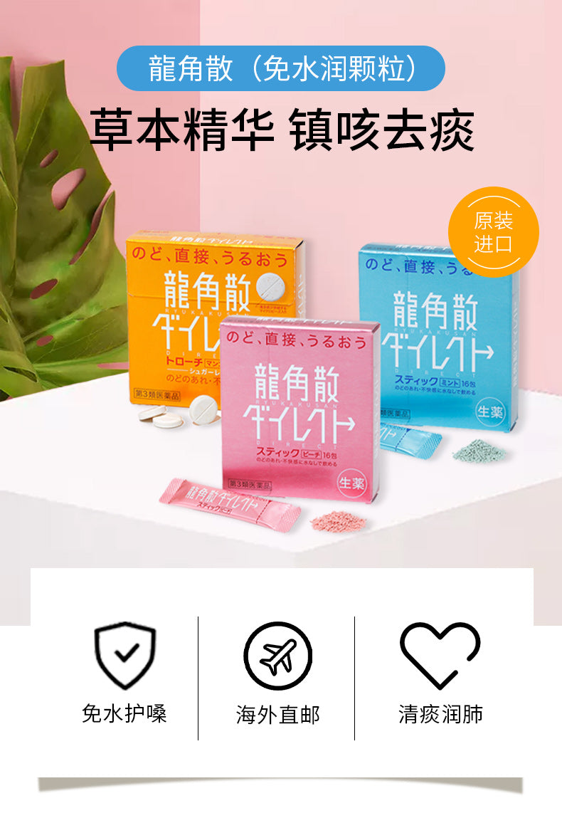 【自营】日本RYUKAKUSAN龙角散 润喉片 芒果味 20片